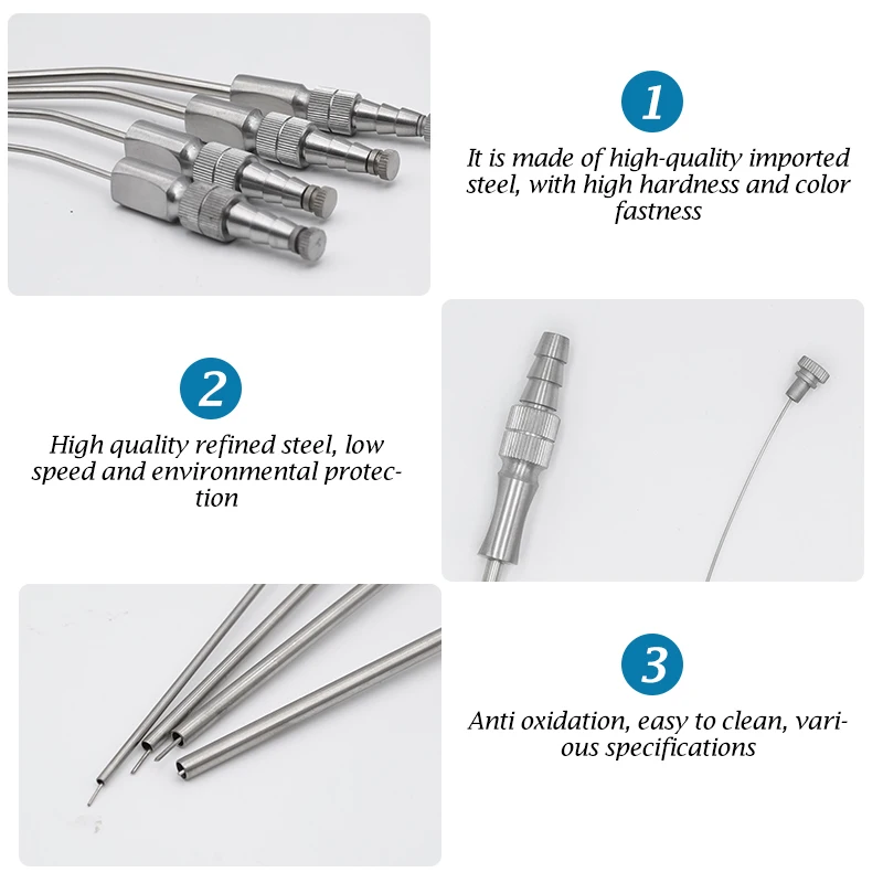 Stainless Steel Implant Surgical Tool Dental Aspirator Ferguson Frazier Suction Tube 2mm/3mm/4mm/5mm Oral Weak Straw Lab Tube for Dental Clinic