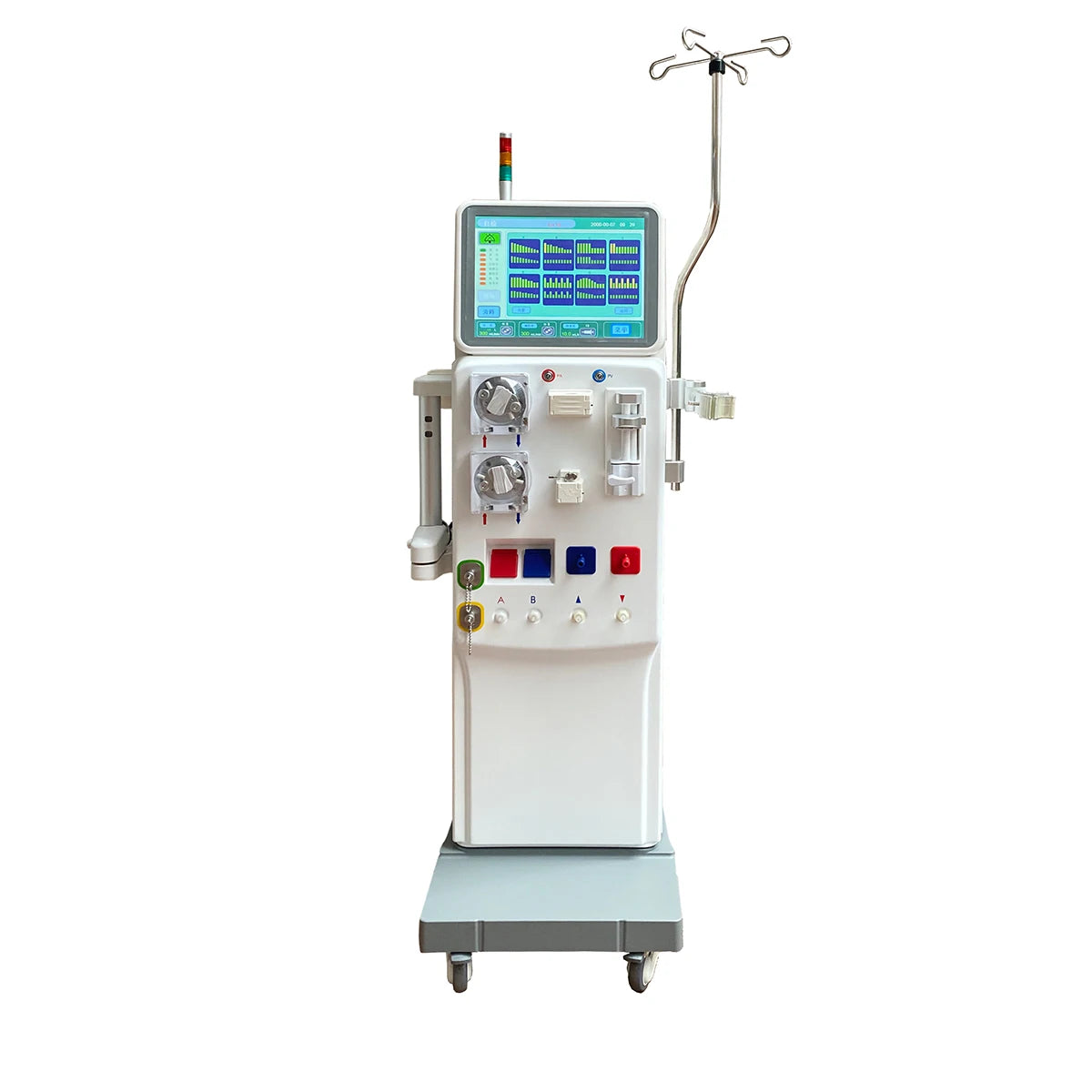 The MSLHM31 Hemodialysis Machine consists of a blood pump and a liquid pump which are completely independent in both electrical and mechanical structure. The blood circulation is achieved through the blood pump and the flow of dialysis fluid is achieved through the liquid pump.