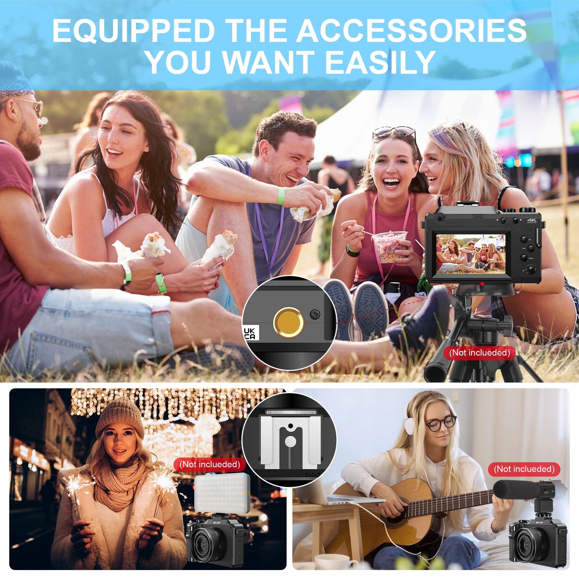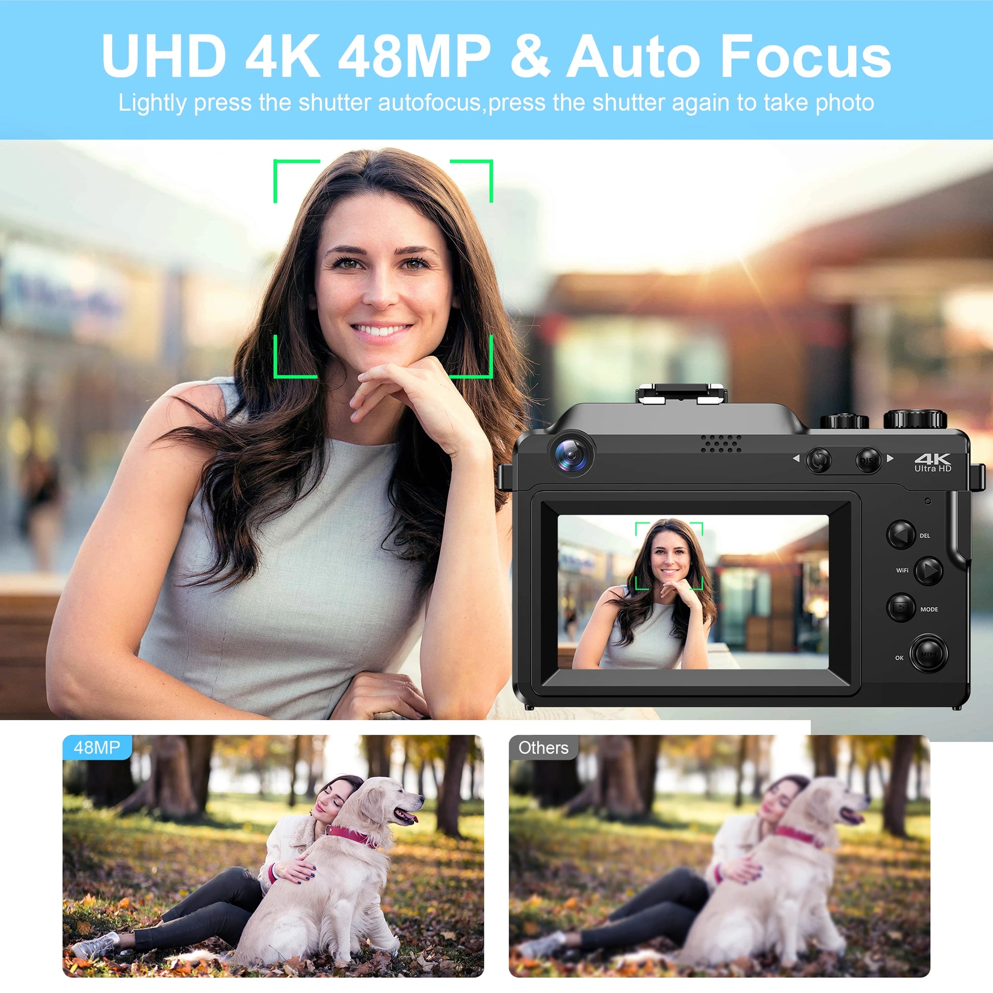 Digital Camera Vintage Style 48MP 4K Point and Shoot Camera with 18X Zoom Includes 32GB Card Perfect for Vlogging