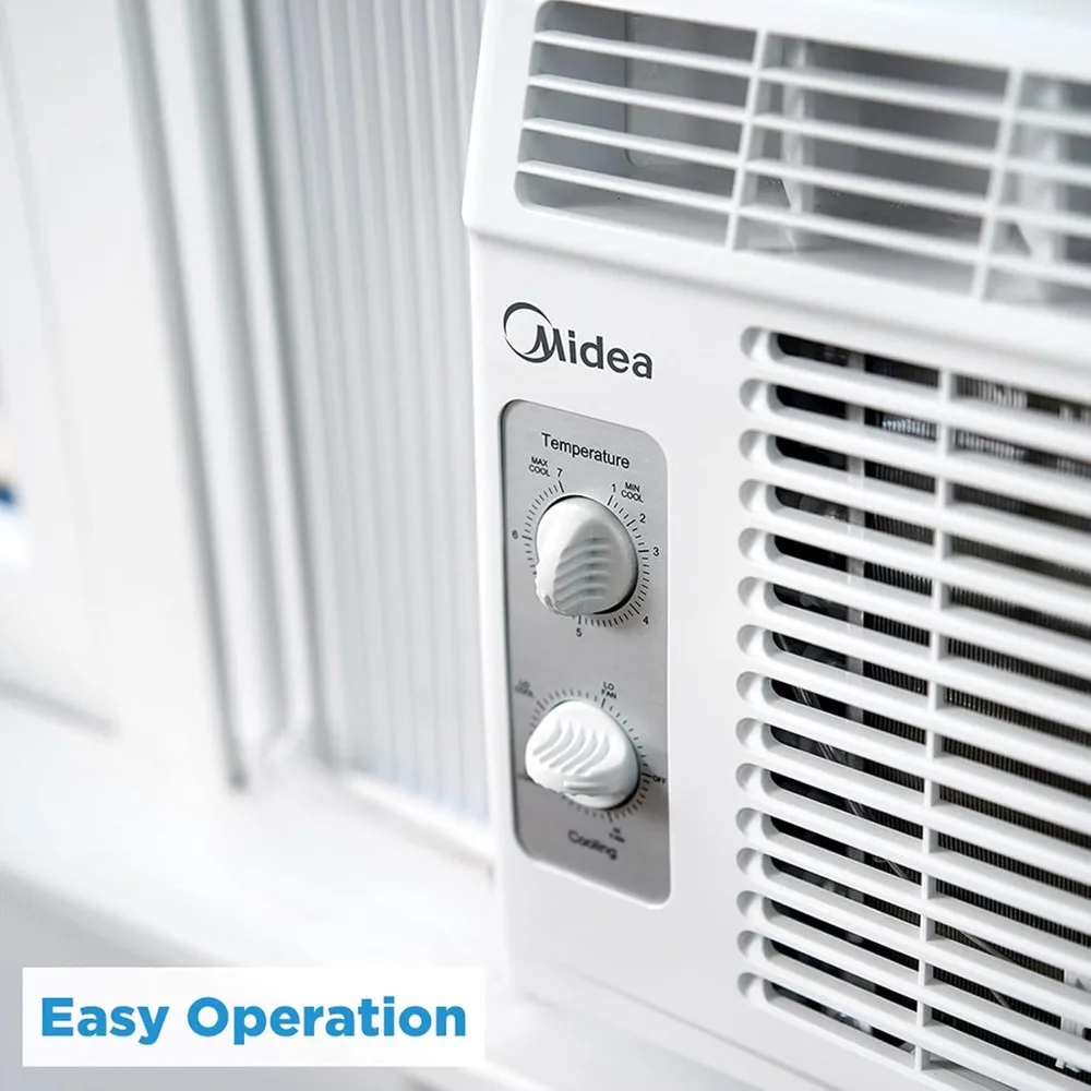 - PERFECT FOR SMALLER ROOMS - Affordable Window AC unit is perfect to help your room be as comfortable as possible. It can cool 150 sq. ft. with 7 temperature settings, 2 cooling/2 fan-only speeds, and 2-way air direction to give you the perfect amount of cooling every time.Controller type:Button Control.Air Flow efficiency:145 CFM. Moisture removal-1.27 pints/ hr.Core material : Copper..Control Type : Electronic. Refrigerant : R410A.