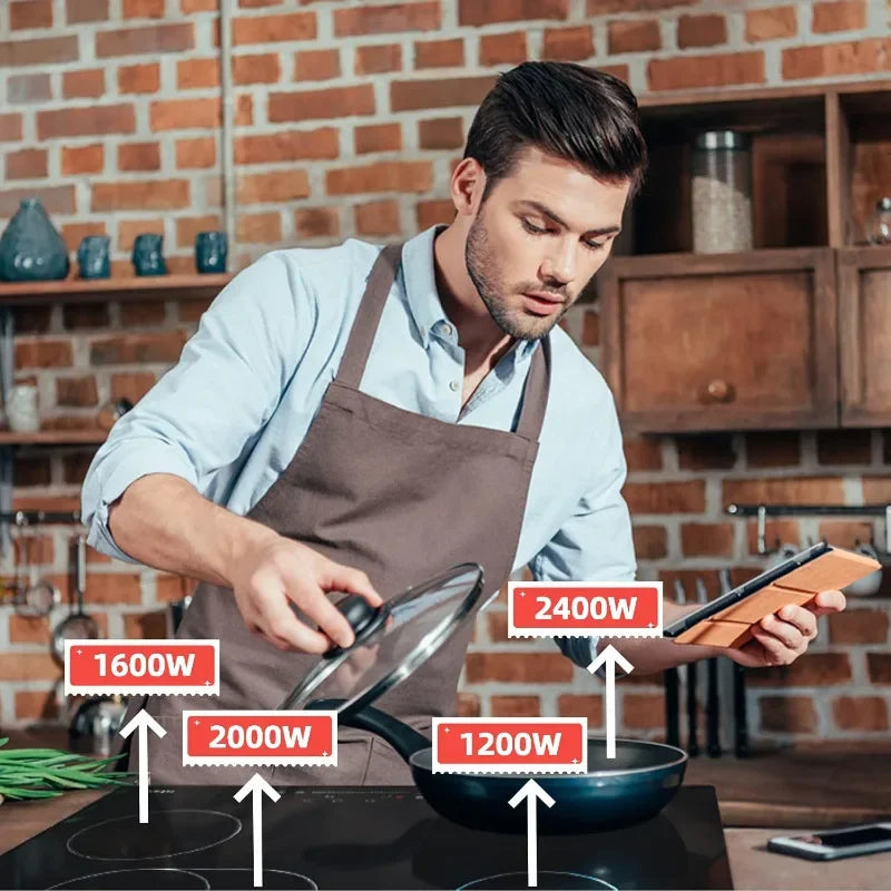 - đ˛ăMake Cooking Time & Energy SavingăThis electric cooktop ceramic stove 4 burners offers 1-99min Timer and Continue/Pause function which makes cooking easy and enjoyable. It is freely adjustable to suit your cooking needs. 1200W&1600W&2000W&2400W. High-power induction cooker saves you cooking time.