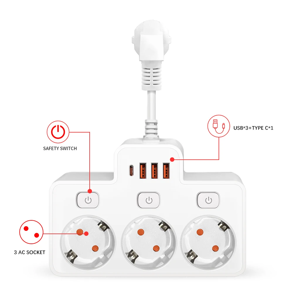 EU AC Plug Power Strip Wall Mounted Independent Switch Multitap Network Filter With USB C Charging Network Filter Adapt
