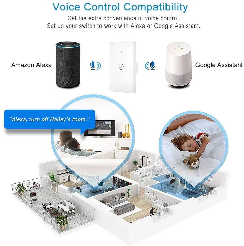 Wide Compatibility: The switch can be compatible with both iOS ans Android Mobile System, works with Amazon Alexa/Echo, Google Home.