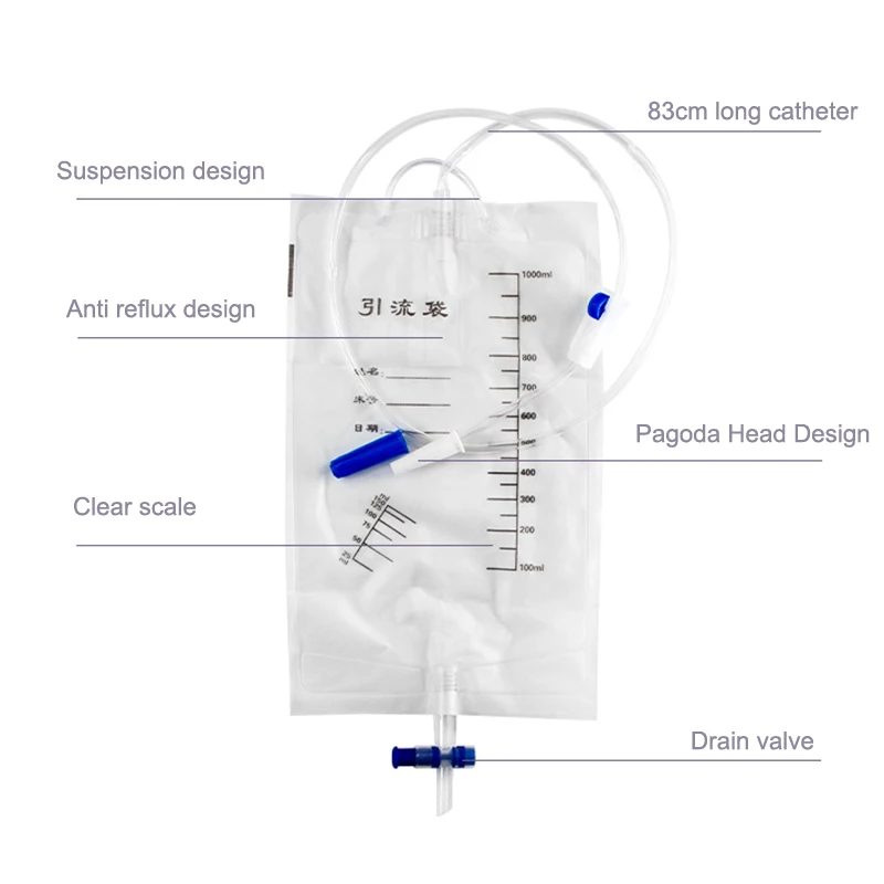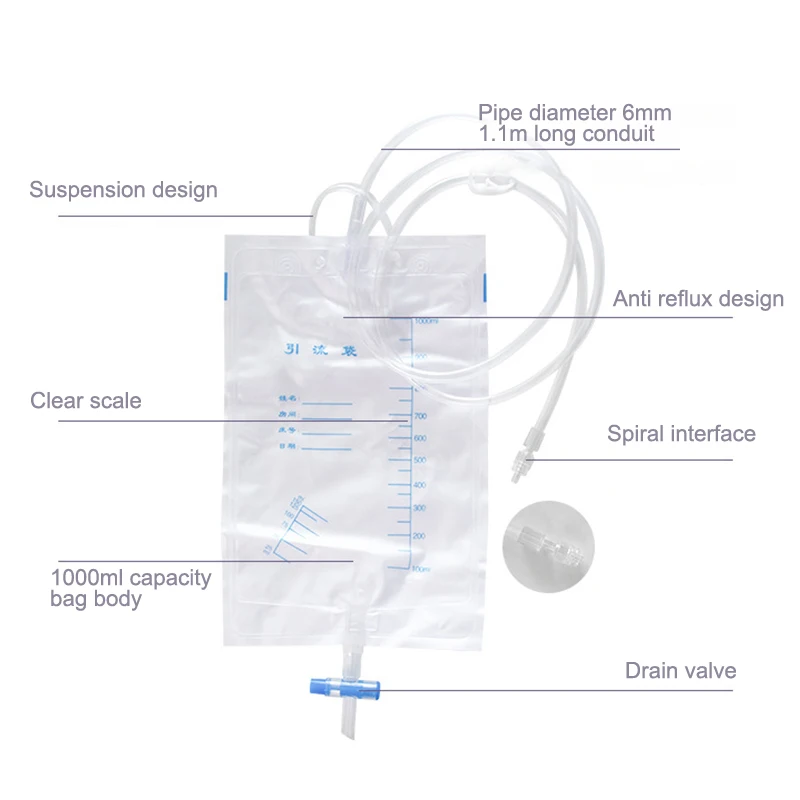External Disposable Sterile Urine Bag PVC Storage Urinary Drainage Sack Pee Collection Bags With Cross Valve Catheter