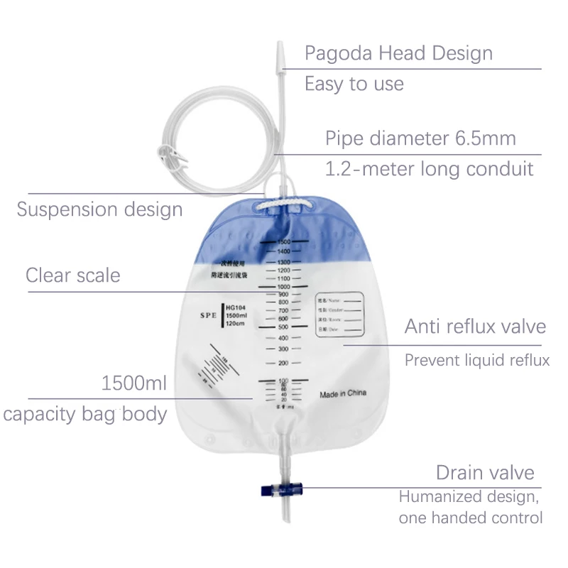 1. Portability: Disposable urine collection bags are lightweight and compact, and can be easily carried in a bag or pocket. This makes them perfect for traveling, camping, hiking, or any situation where you may not have immediate access to a restroom.
