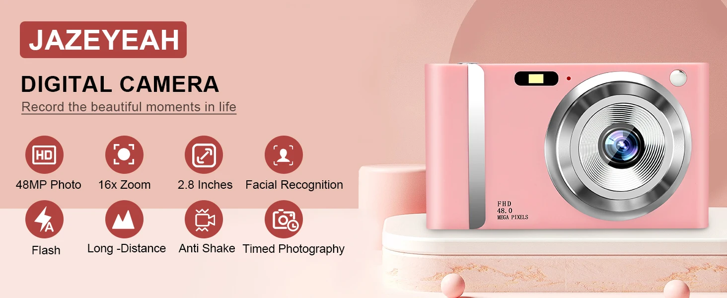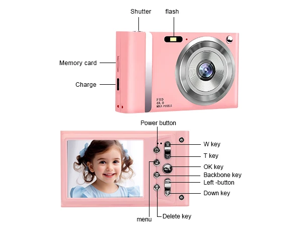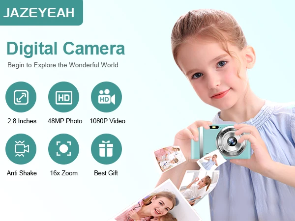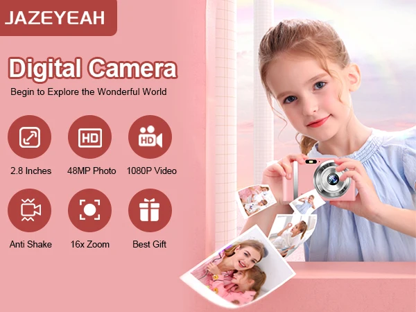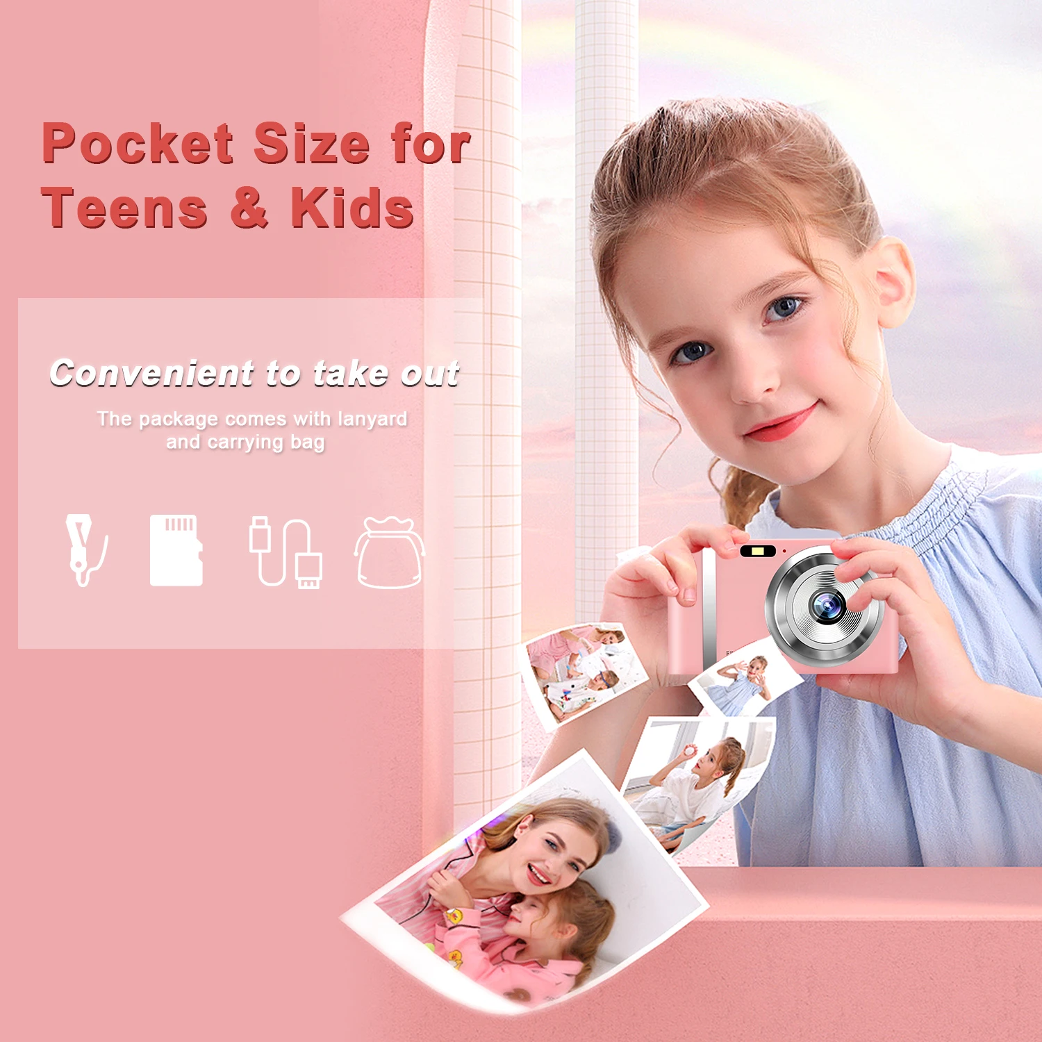 FHD 1080P Digital Camera for Kids Video Camera with 32GB SD Card 16X Digital Zoom Compact Point and Shoot Camera for Students