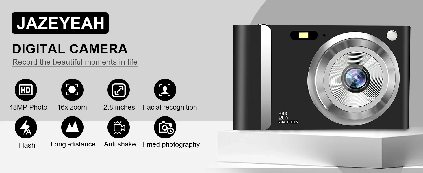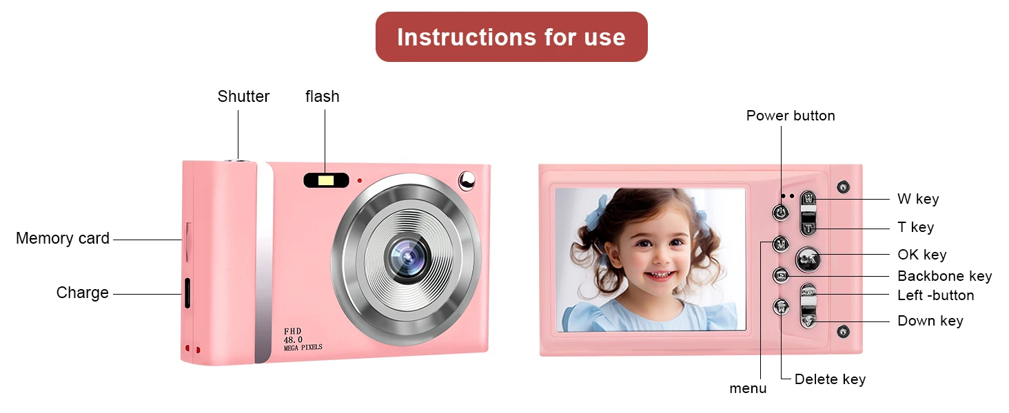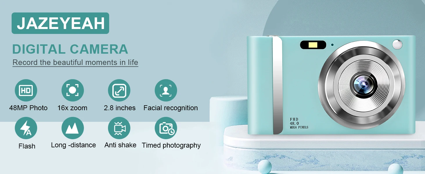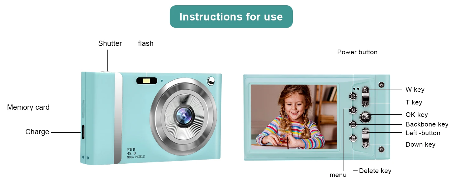 FHD 1080P Digital Camera for Kids Video Camera with 32GB SD Card 16X Digital Zoom Compact Point and Shoot Camera for Students