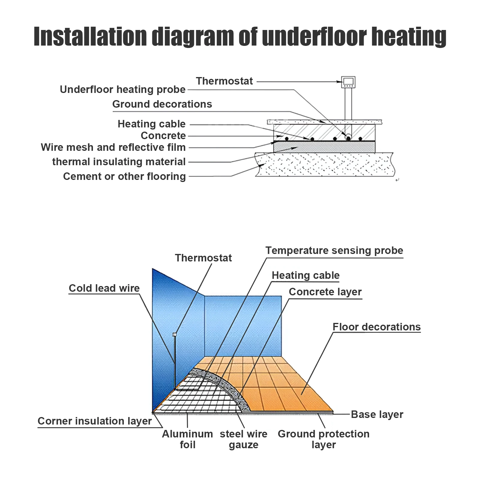 Floor Heating Pad with Digital Programmable Thermostat And Adhesive Back, Four Temperature Control Modes Uniform Heating