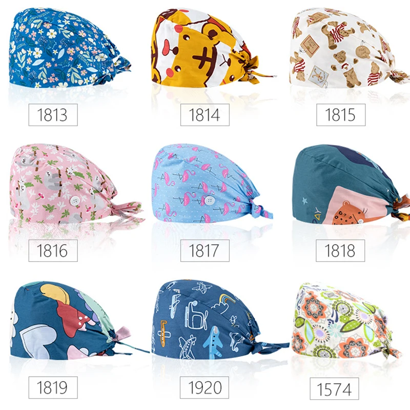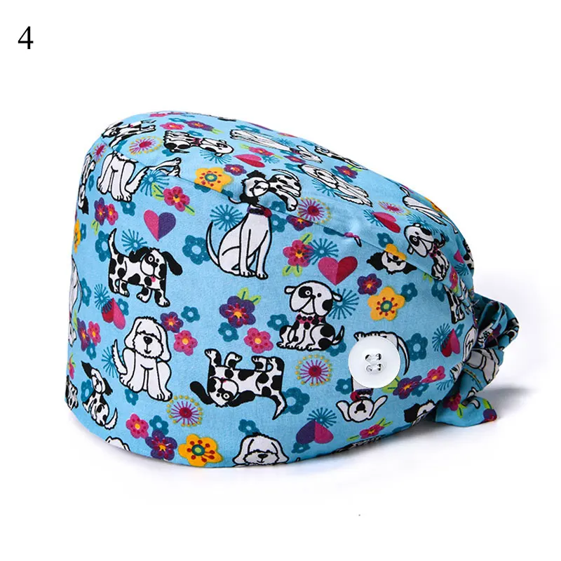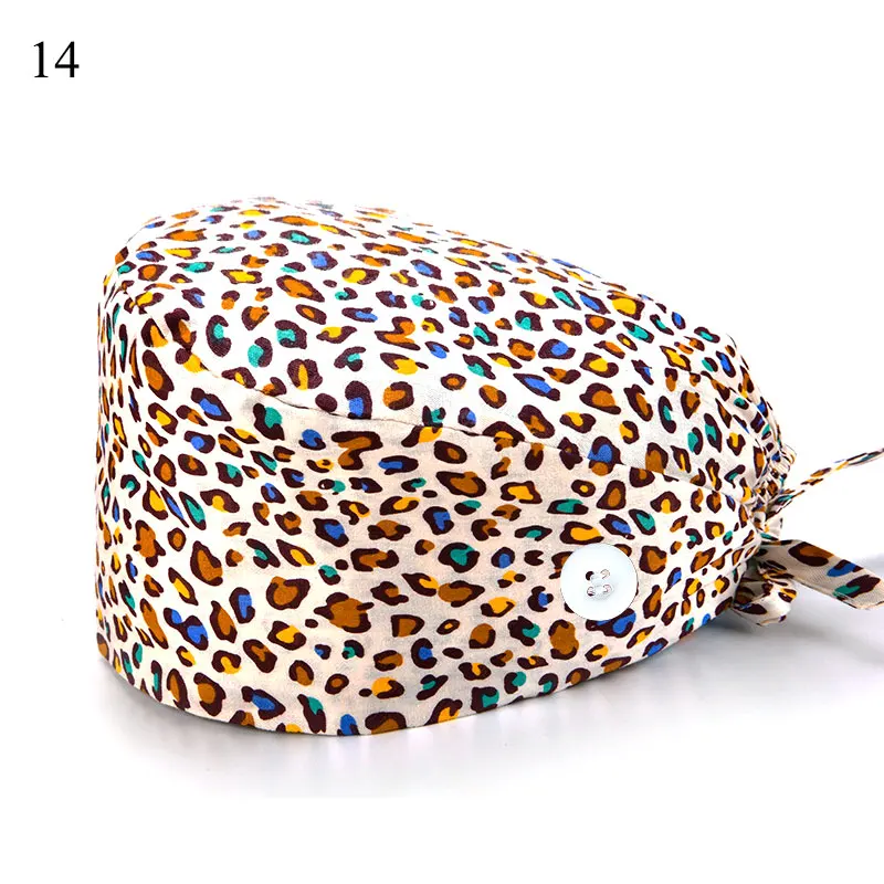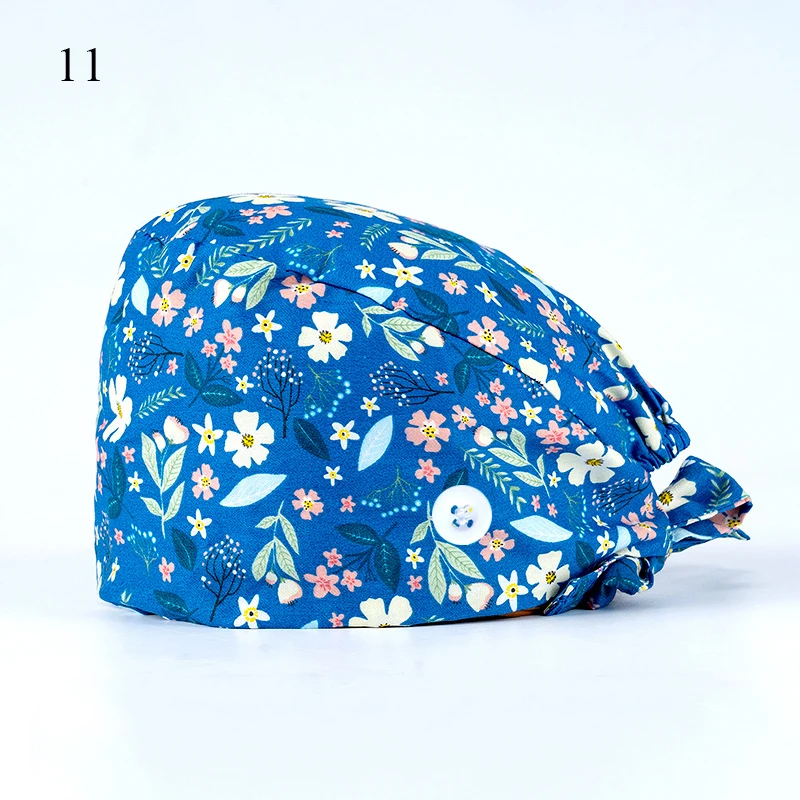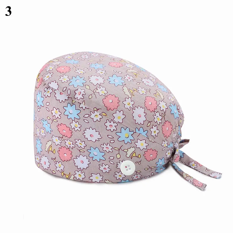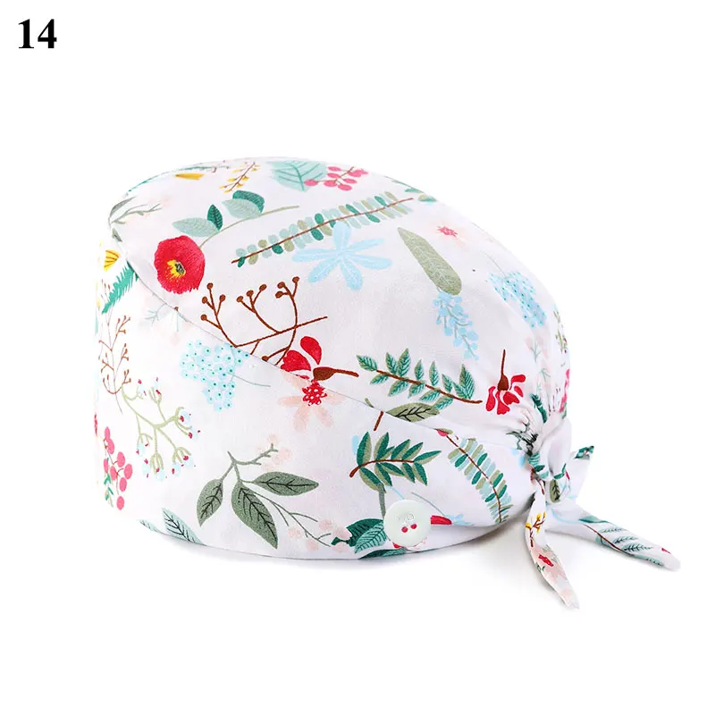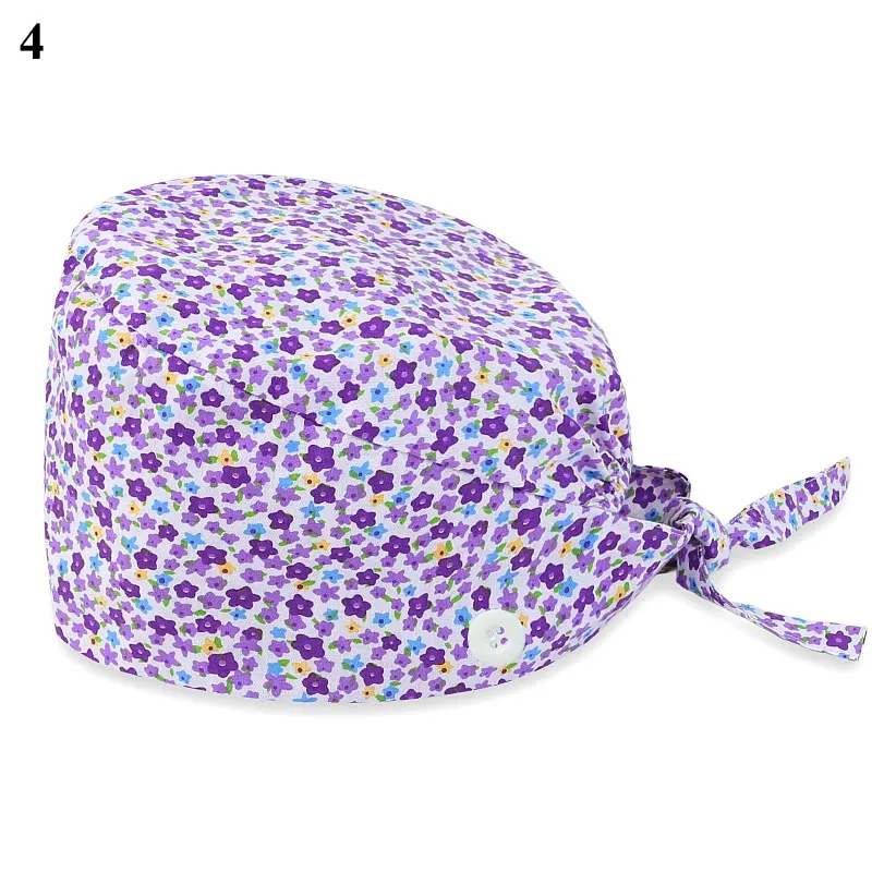Floral Soft Hat Printing Nurse Sweat-absorbent Head Wrap Towel Surgical Anti-Dirty Pure Cotton Cap With Button Scrub Cap
