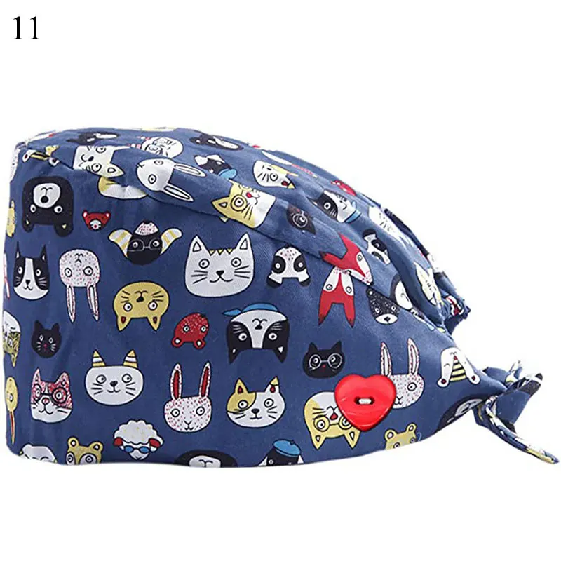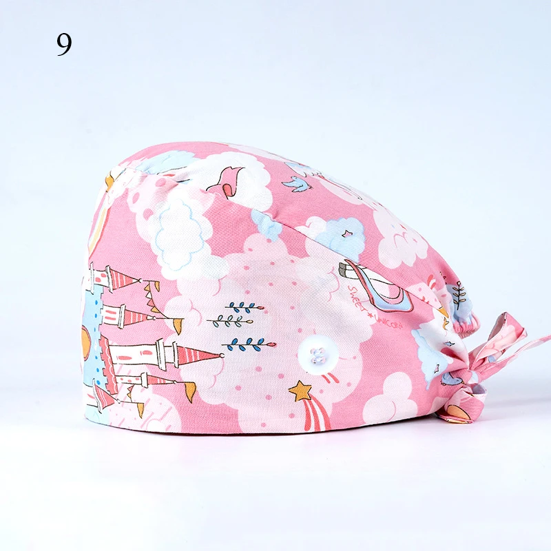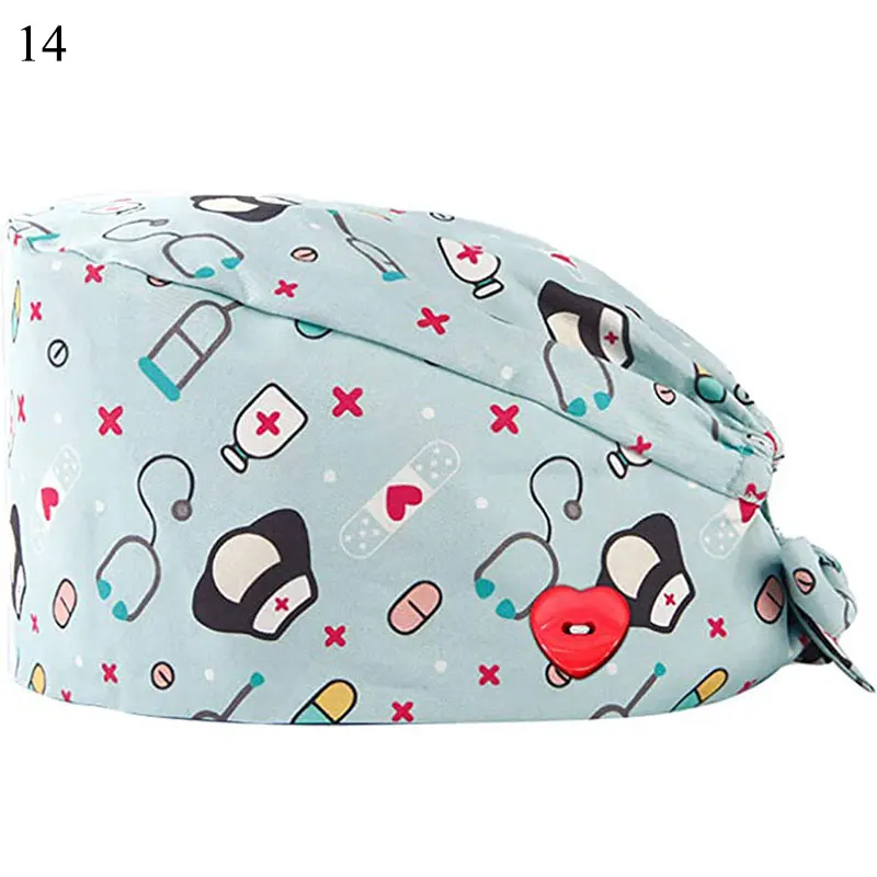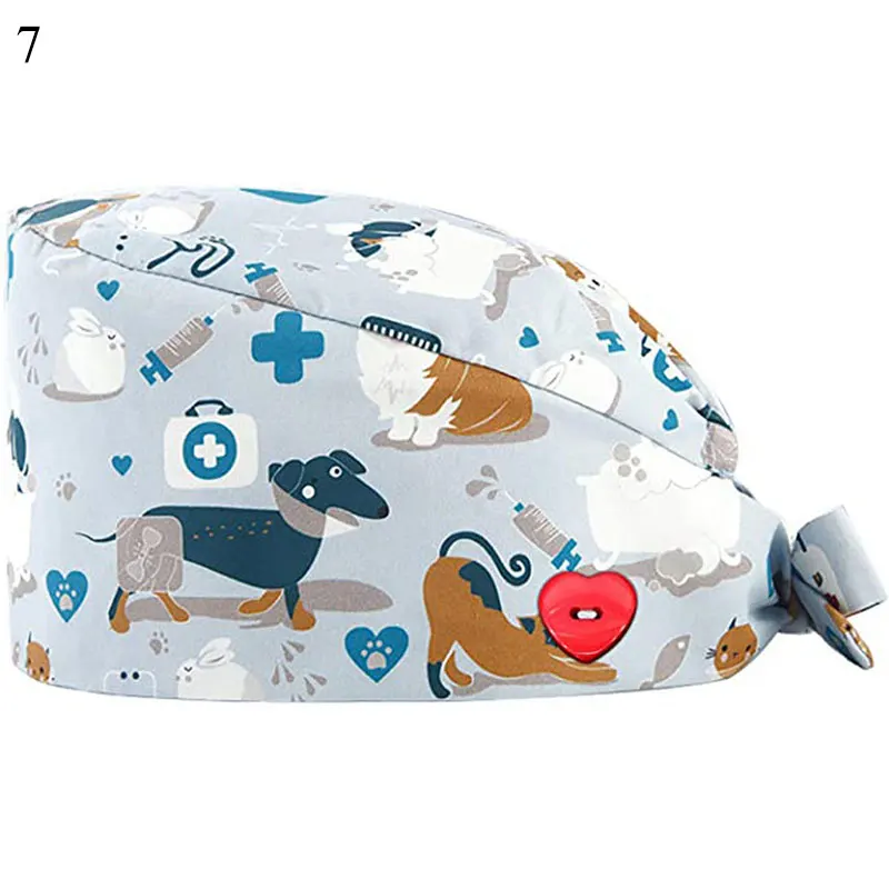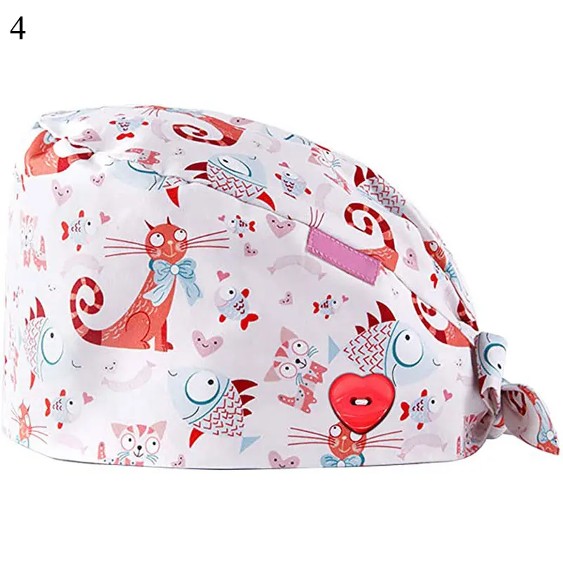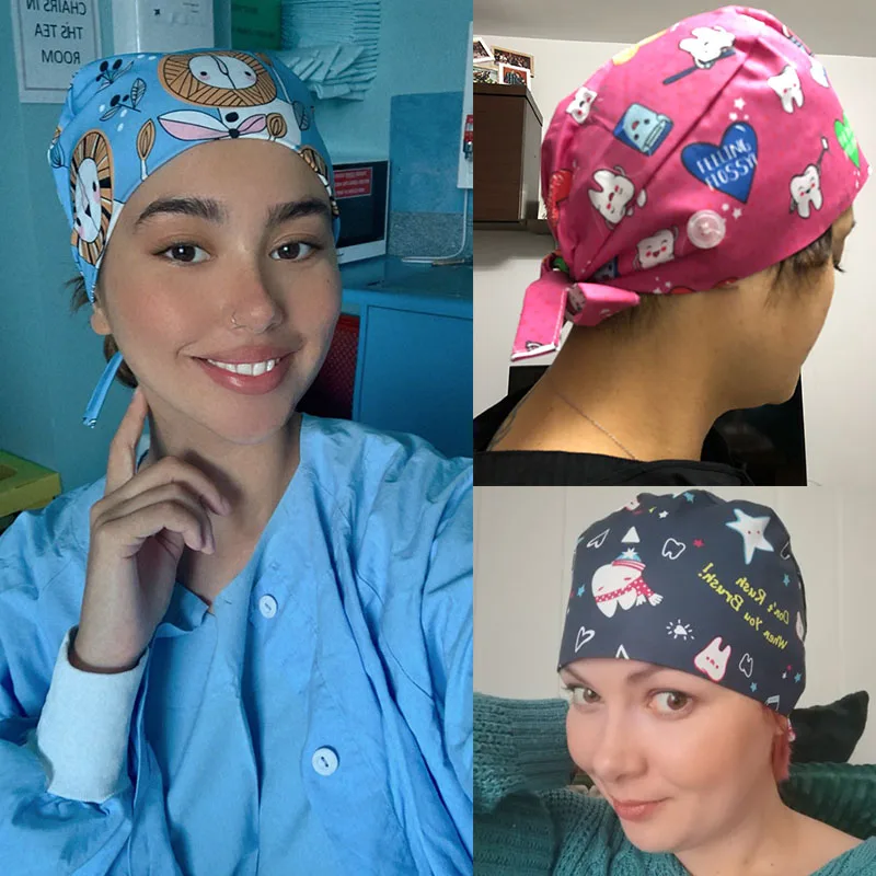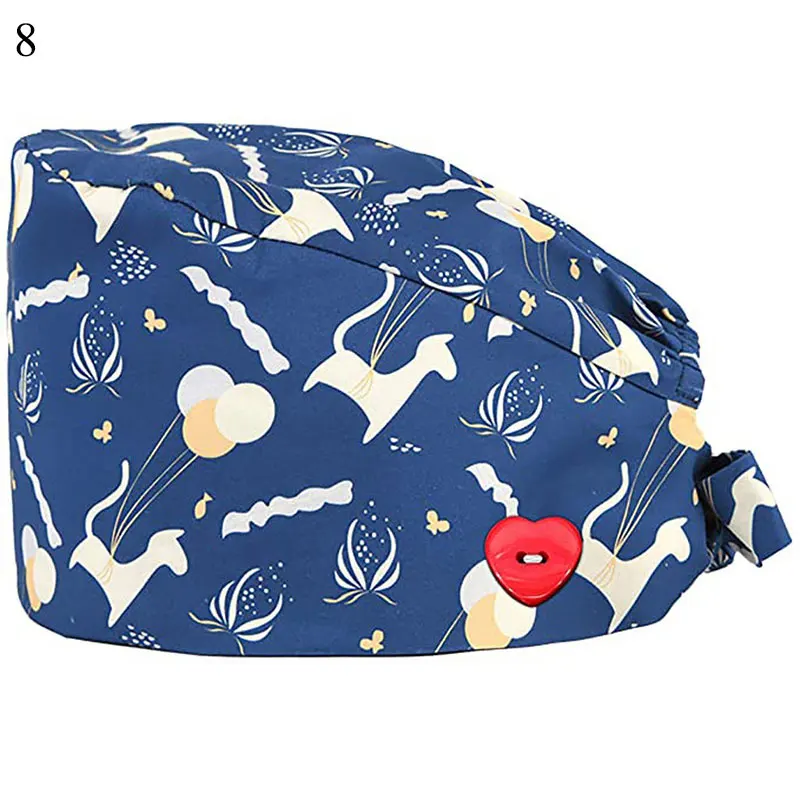 Floral Soft Hat Printing Nurse Sweat-absorbent Head Wrap Towel Surgical Anti-Dirty Pure Cotton Cap With Button Scrub Cap