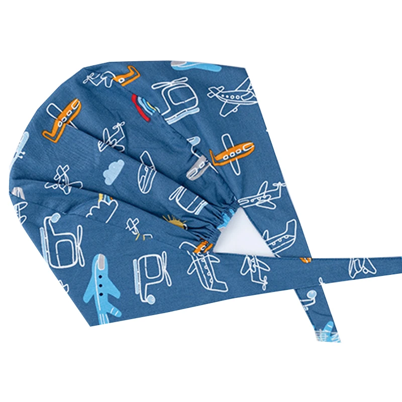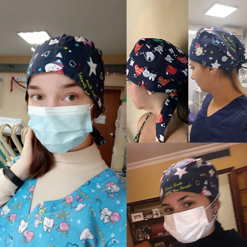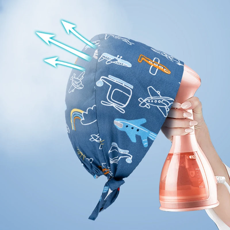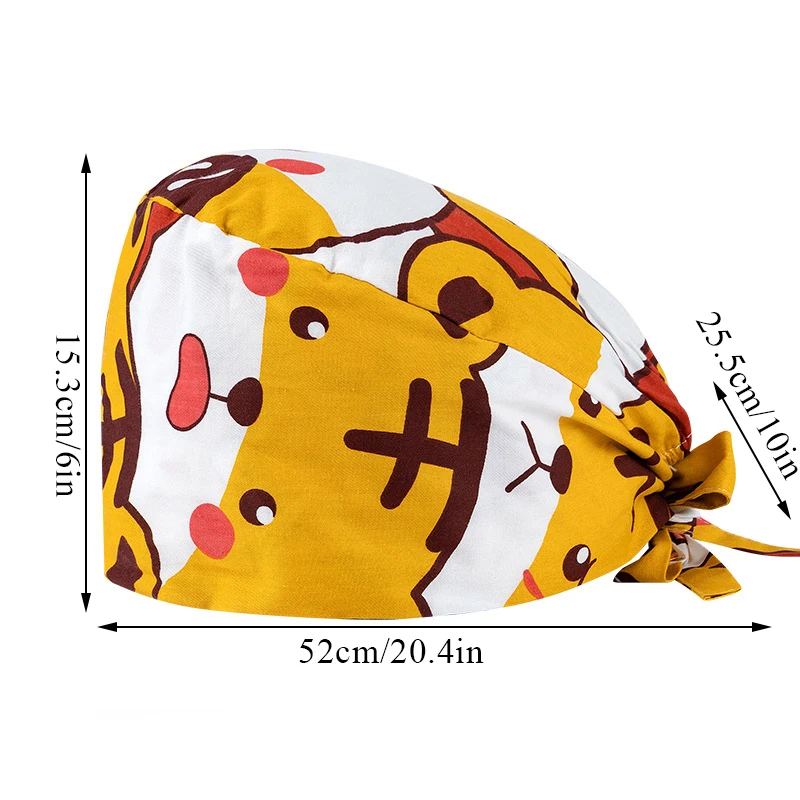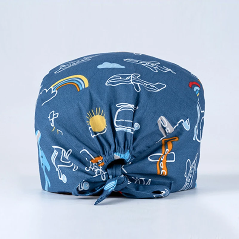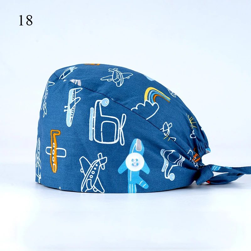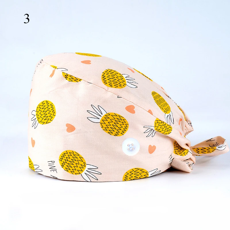 Floral Soft Hat Printing Nurse Sweat-absorbent Head Wrap Towel Surgical Anti-Dirty Pure Cotton Cap With Button Scrub Cap