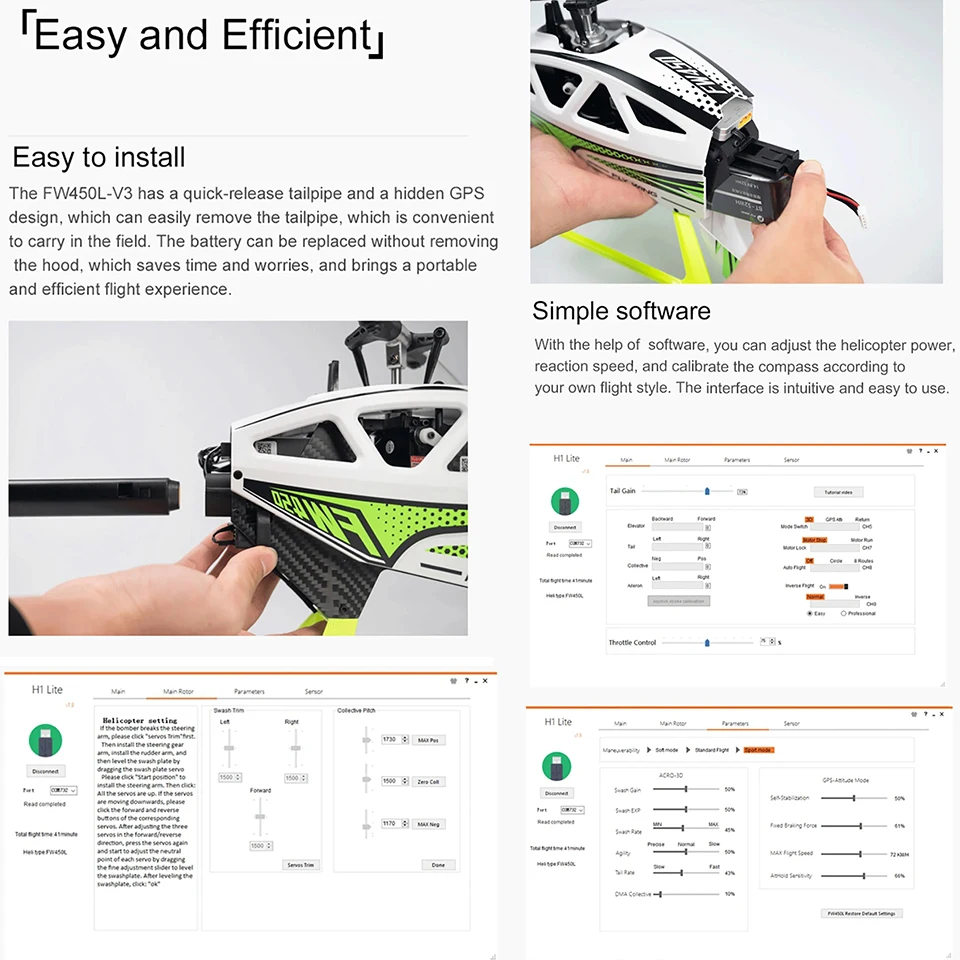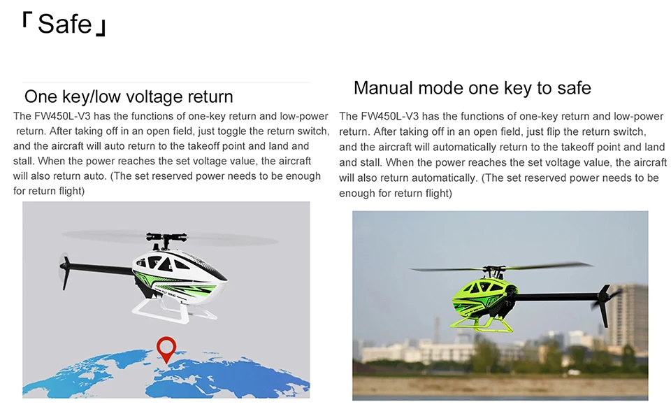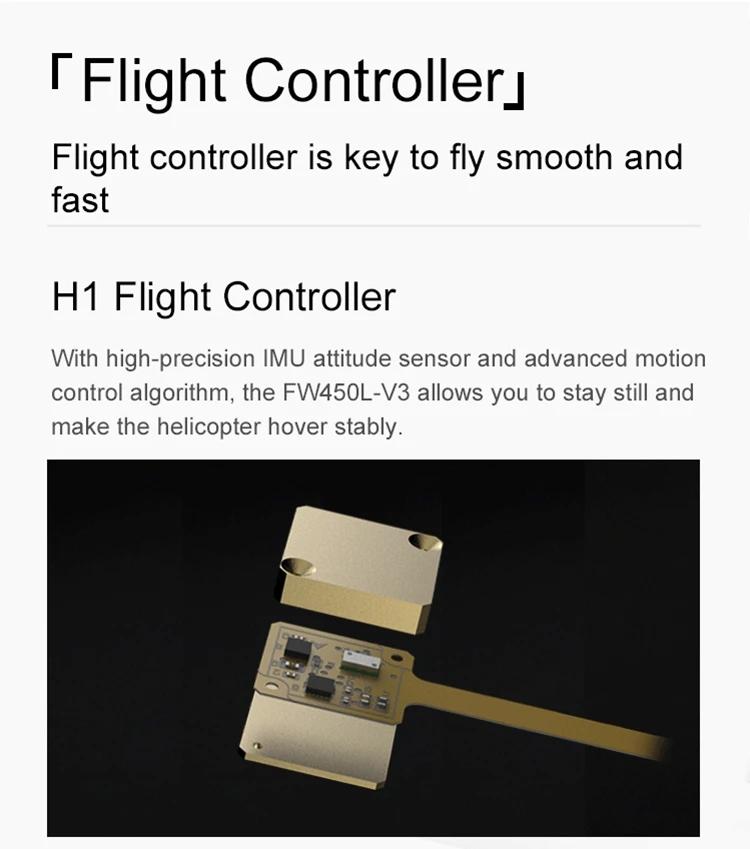 Say hello to the most Ready-to-Fly RC helicopter ever! FW 450L-V3 introduces you to an entirely new RC helicopter experience! It is the world’s first RC helicopter that supports auto-aerobatic flight.