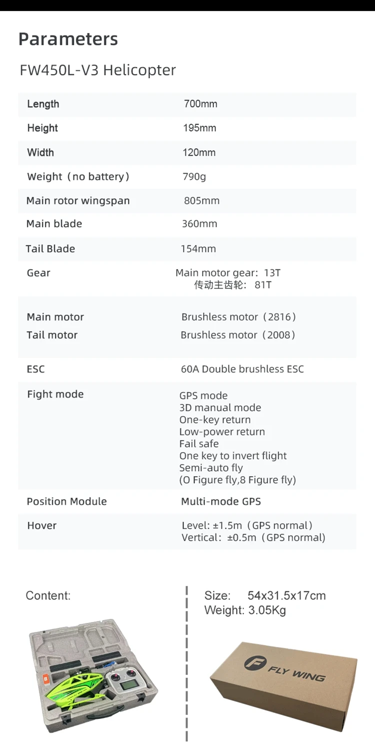 ✅ Stable Fly RC Helicopter: The Fly Wing FW450L-V3 is equipped with a new Beidou positioning systemand a high-precision IMU attitude calculation unit with a barometer .which makes the helicopter almost as simple and easy to fly as the drone in GPS mode . It has the flight experience of putting the stick and stopping when the stick is released
