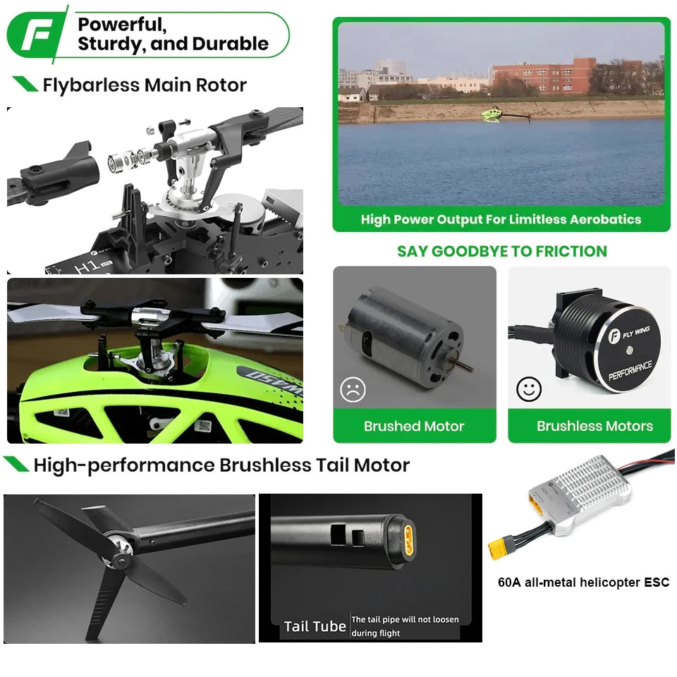 With a Flybarless (FBL) rotor head, similar to that found in 700L RC helicopters, Fly Wing boasts impressive stability.