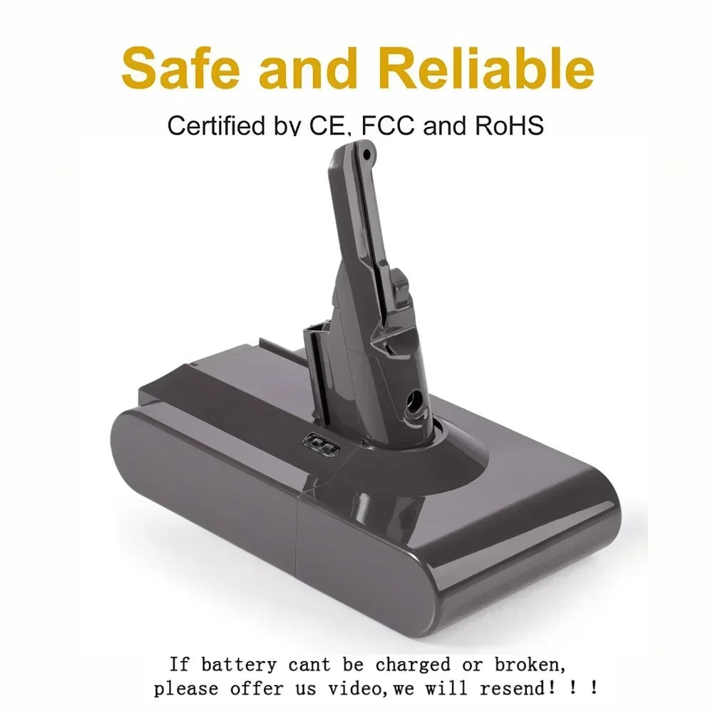 Specification :Dyson V8 Product Type: Replacement Battery Chemistry: Li-ion Voltage : 21.6V Capacity: 6800mAh/9800mAh/12800mAh Compatible With : For Dyson V8 Series,for Dyson V8 Fluffy,for Dyson V8 Absolute ,for Dyson SV10 Battery. Note: 1. The battery must be FULLY charged before first use. 2. The battery is stored in a cool and dry place. 3. Do not Separation, extrusion, and impact. 4. Do not put battery into water and fire. 5. Keep away from children. 6, No memory effect Advantage: * Under the same quality,you can get the lowest price from our factory * Quick delivery * High energy density * High working voltage for single battery cells * Pollution-free * Long cycle life.