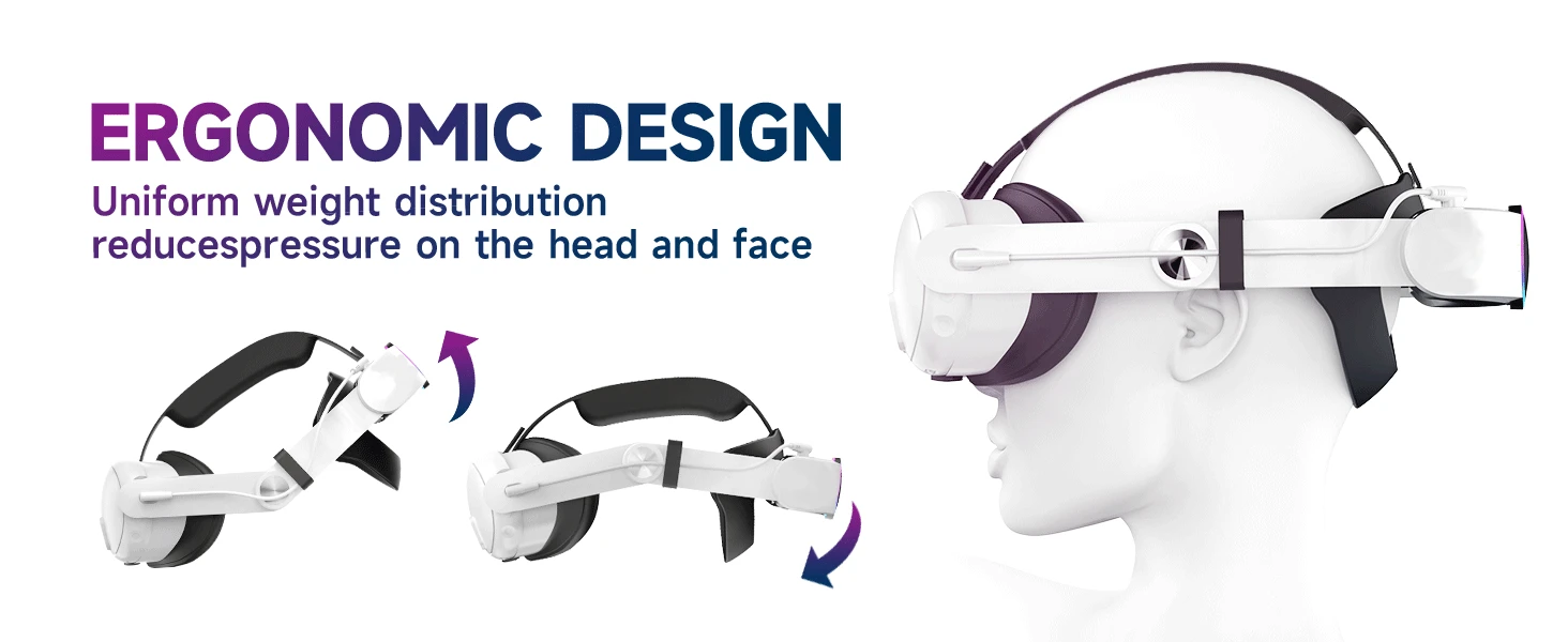 Relaxed and Comfortable: Our battery pack for quest3 Head Strap has a 52° adjustable hinge, making it easy to take off and put on. It also comes with a TPR high-quality material head pad that enhances breathability and water absorption, so you can enjoy an immersive gaming experience in comfort, 360° rotatable knob for players of all head sizes.