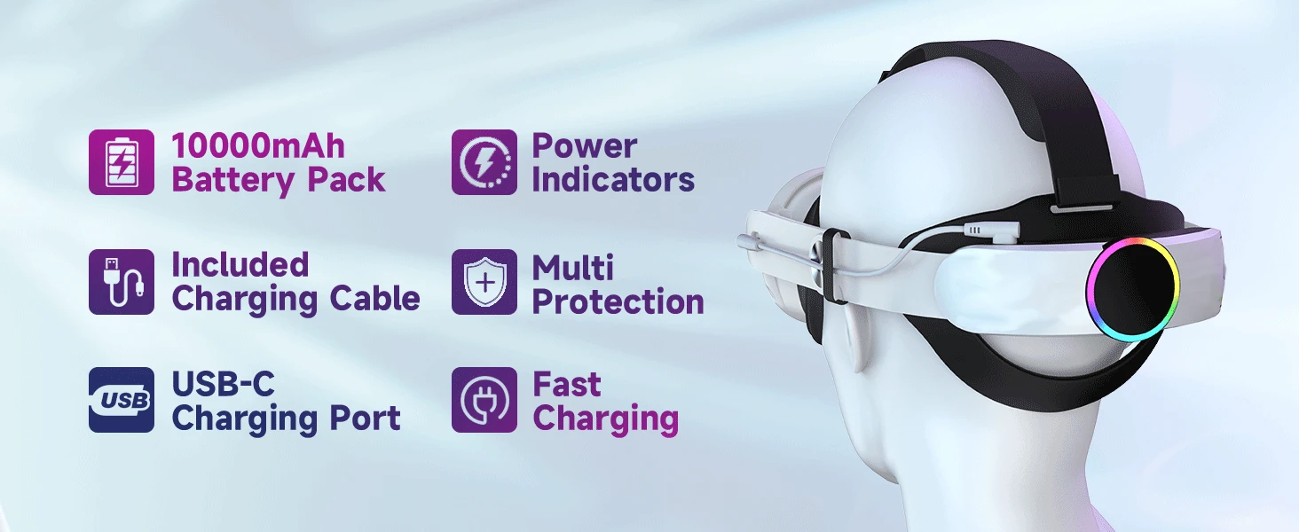 Extended Playtime: With a high-capacity 10000mAh battery, our VR accessories allows you to extend your VR Headset playtime by up to 8 hours. Enjoy your favorite VR games and apps without worrying about running out of battery.