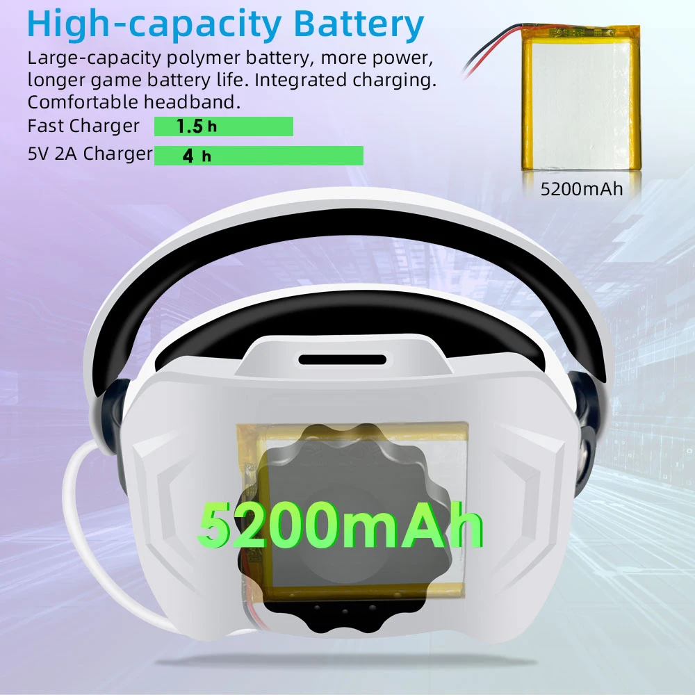 Adapt to different head shapes. Comes with a 5200mAh rechargeable battery. You can play while charging.