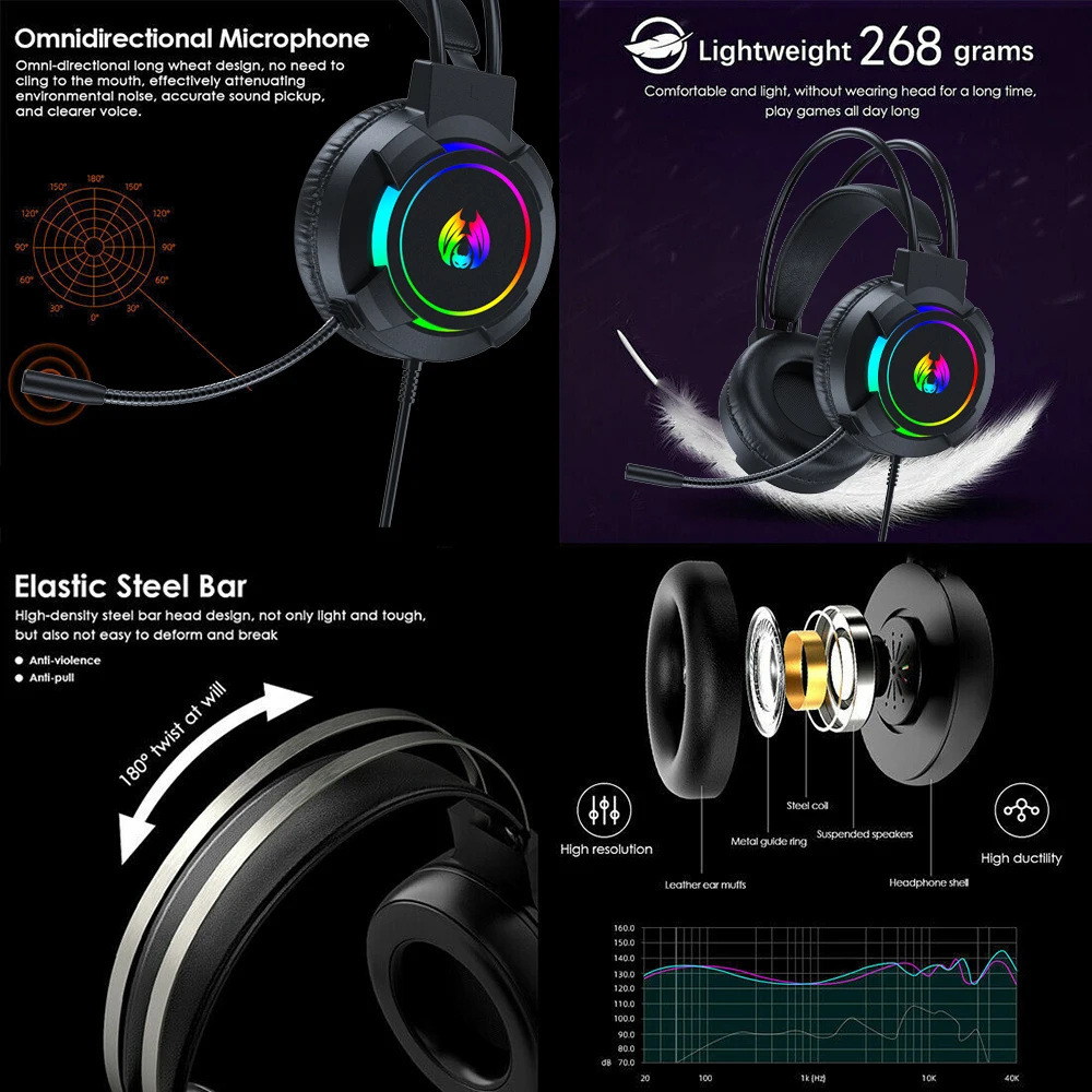【 Comfortable to wear 】 Humanized head decompression, 50mm large dynamic drive device, 7.1 stereo channel, HIFI sound quality, multiple versions available for universal compatibility.