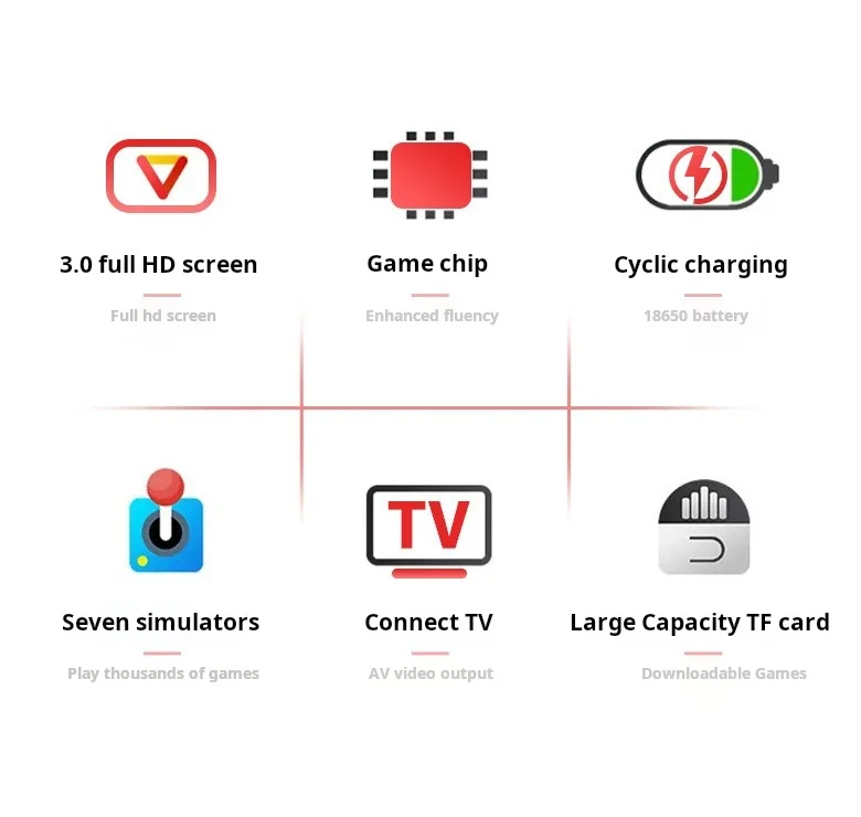 • AV Output Support :The device supports AV output, allowing you to enjoy your games on a larger screen using external devices.