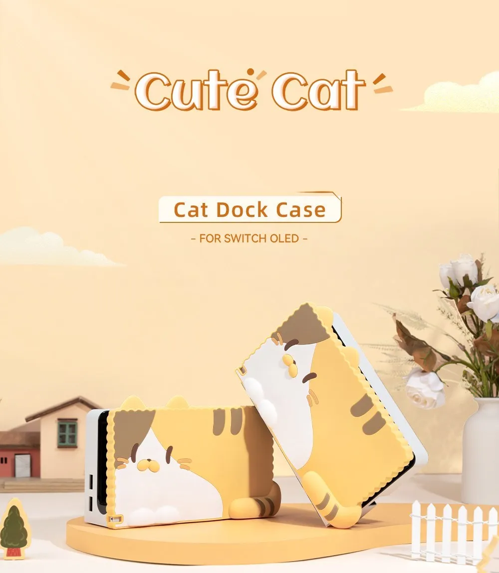 GeekShare Charging Dock Case for Nintendo Switch OLED Kawaii 3D Cat Jojo Silicone Soft Dock Shell NS Game Accessories