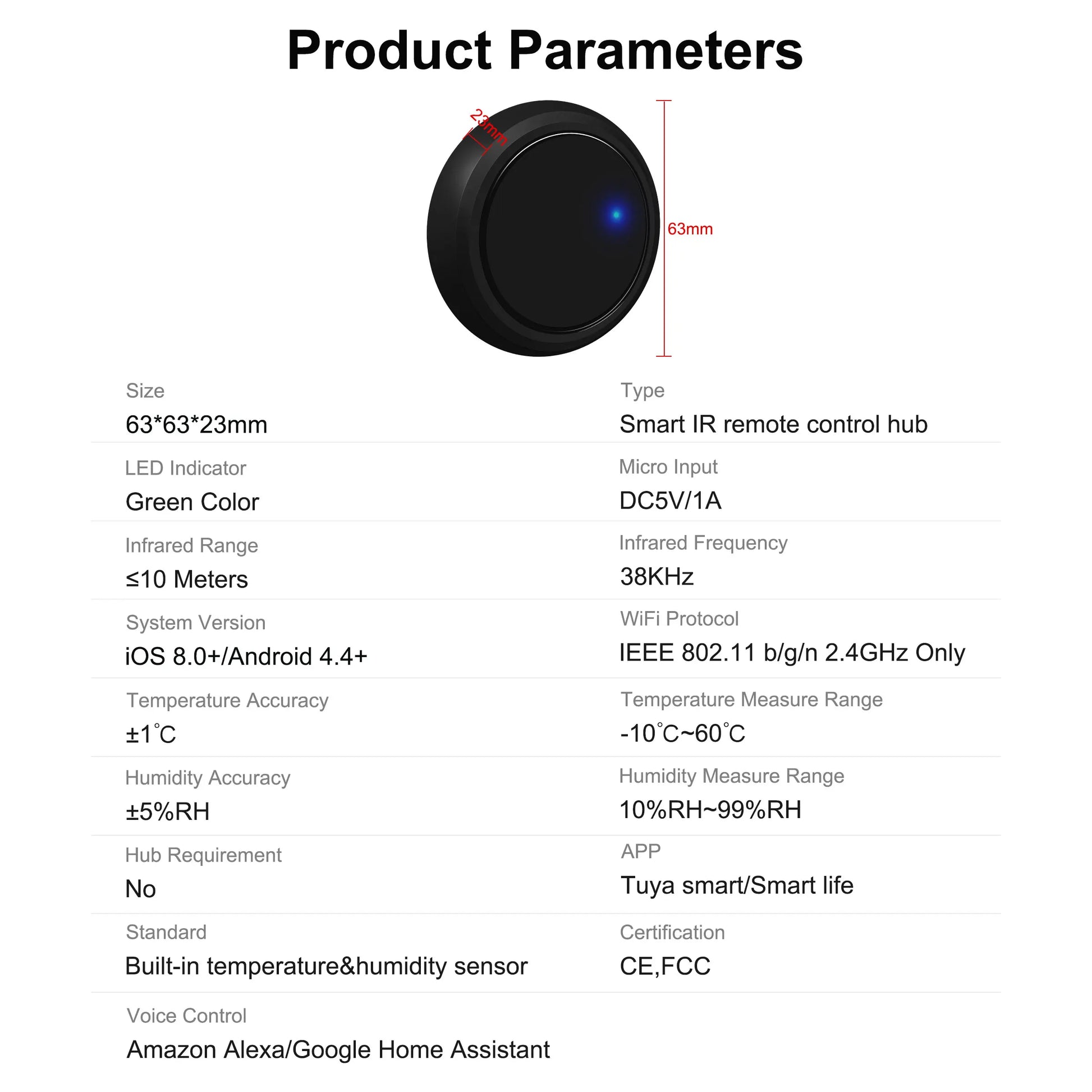 Upgrade your home appliances with this smart remote control. Accessible from anywhere, control it via the TuyaSmart/Smart Life app.