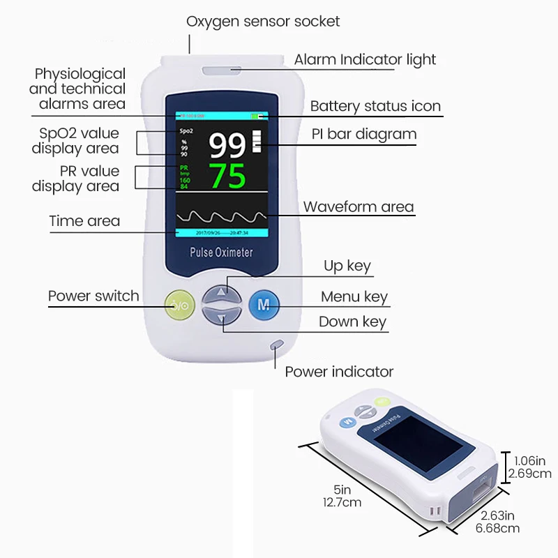 Handheld Finger Pulse Oximeter Portable Fingertip Blood Oxygen Saturation Meter SPO2 PR Heart Rate Monitor Oxymetre Oximetro