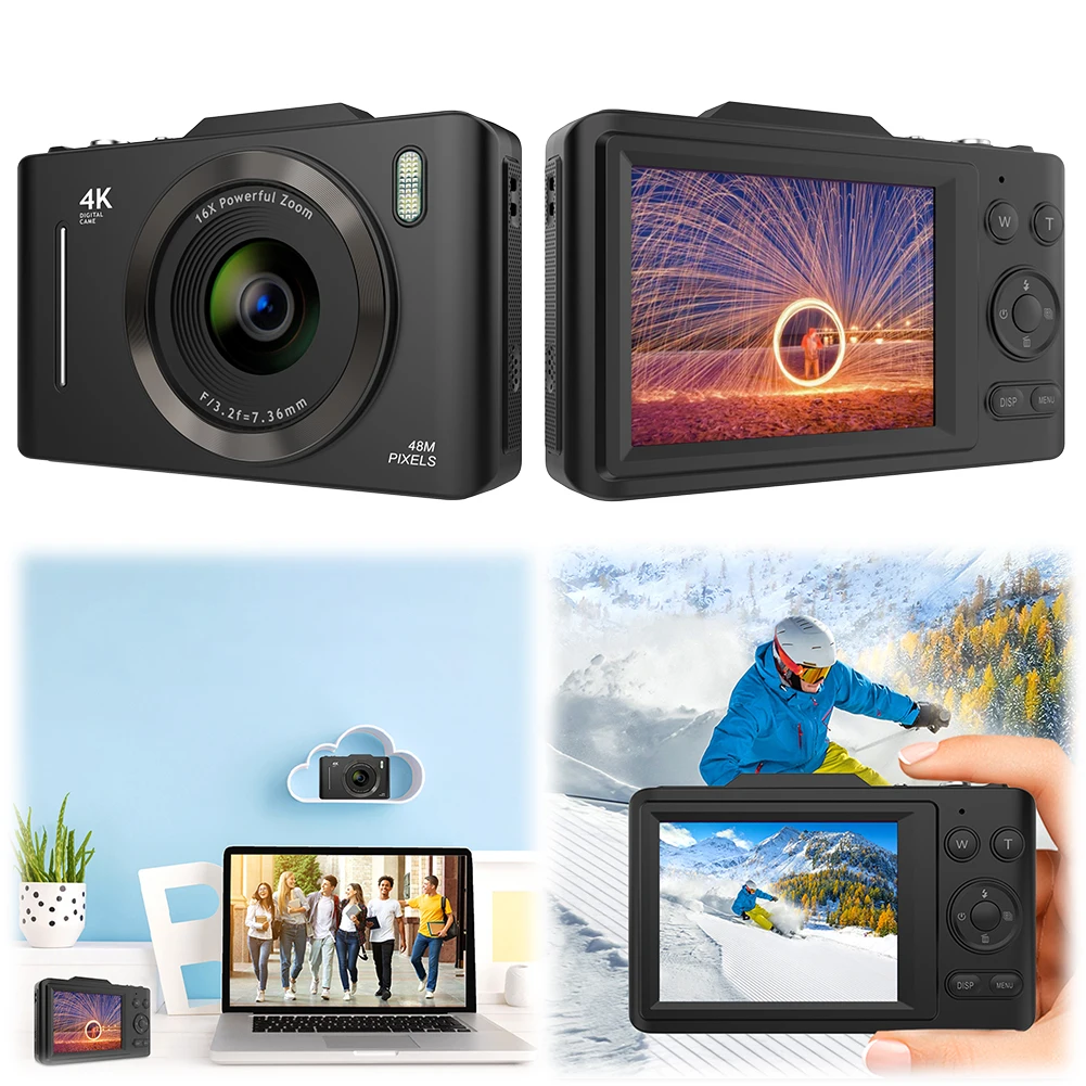 HD 4K 48MP Digital CCD Camera 16X Zoom Point Shoot Camera 2.8 Inch Screen Photography Video Camera for Boys Girls Teens