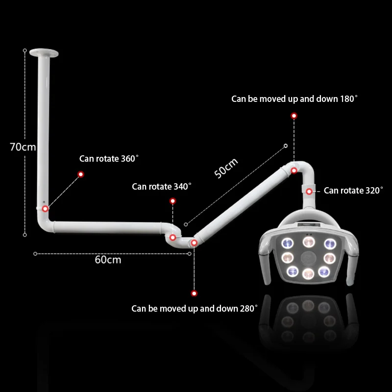 This ceiling ceiling lamp arm saves space, is simple to install, beautiful, and can be adjusted at will. It is especially suitable for dental clinics with a relatively narrow space and does not take up space.