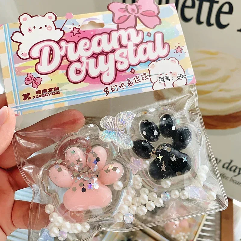HOT Mini Cat Paw Pinch Toy Blingbling Slow Rebound Stress Relief Toys Transparent Cube Squeeze Toy Gift
