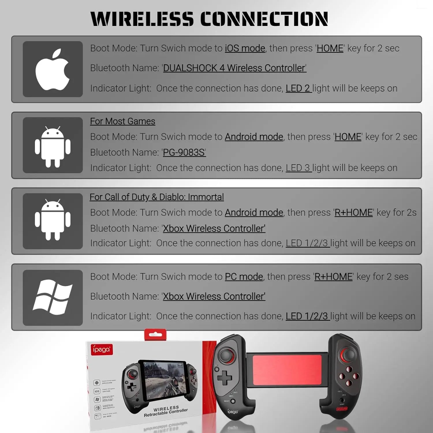 Ipega PG-9083S Game Controller Bluetooth Wireless Gamepad Controle Stretchable Joystick For iOS Android Phone Tablet TV Box PC