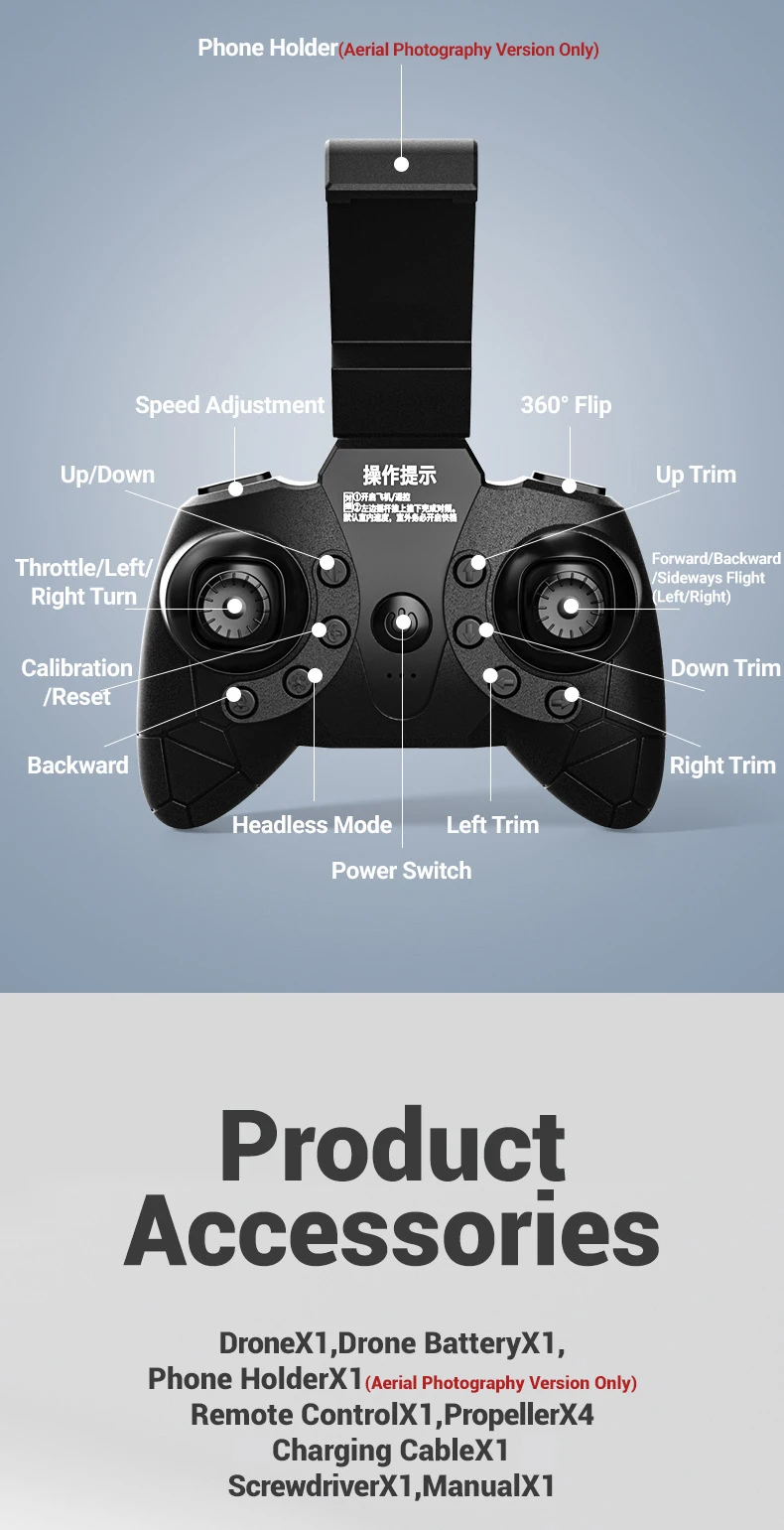 one-key takeoff and landing: when the frequency matching is completed, press one-key takeoff, and the plane will automatically rise 1.5 meters. after hovering, press the key again to fine-tune the left and right landing: if the aircraft deviates to the left during flight, press the right fine-tuning key, and press the left fine-tuning key for right deviation until the aircraft does not fly headless: this mode takes the direction of the remote controller when the frequency matching as the flight direction of the aircraft, this mode takes the direction of the remote controller as the main 360 roll: press the roll button, and then push the right rocker to the corresponding direction to complete the roll in the corresponding direction. one-key return: the aircraft uses the one-key return of the compass mode, which can be understood as one-key back, and takes the rear of the remote control during frequency matching as the backward direction.