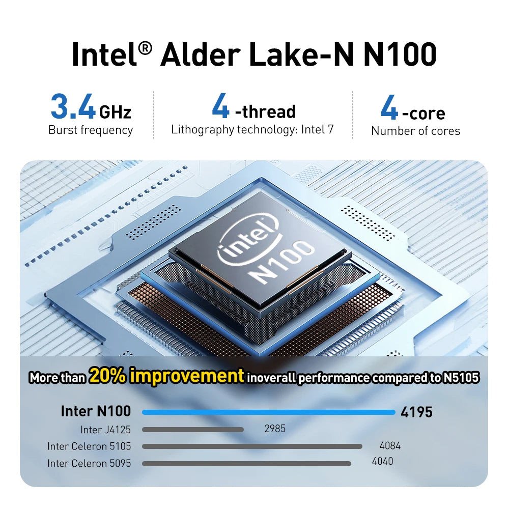 New 12th Generation 4-Core 4-Thread CPU Intel N100 up to 3.4GHz