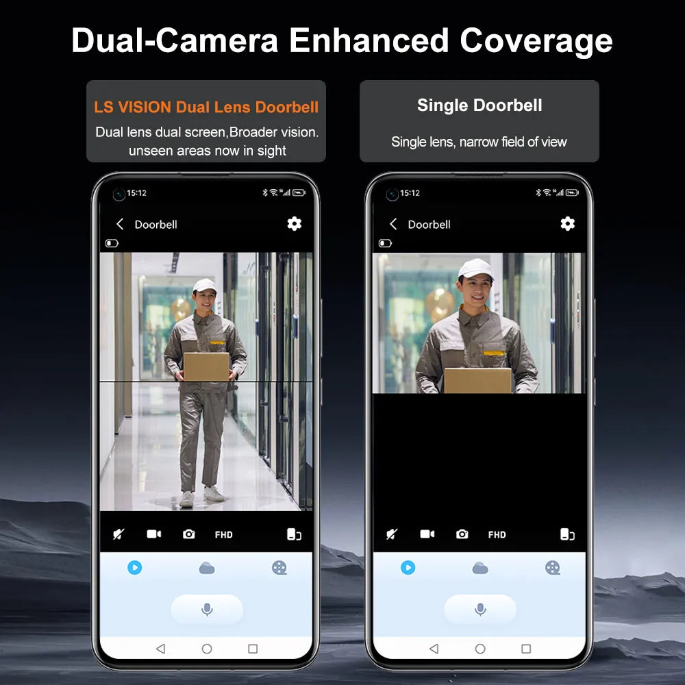 LS VISION 4MP WiFi Dual Screen Video Doorbell Wireless Dual Lens Motion Detection 2-Way Audio Battery Doorbell Camera with Chime