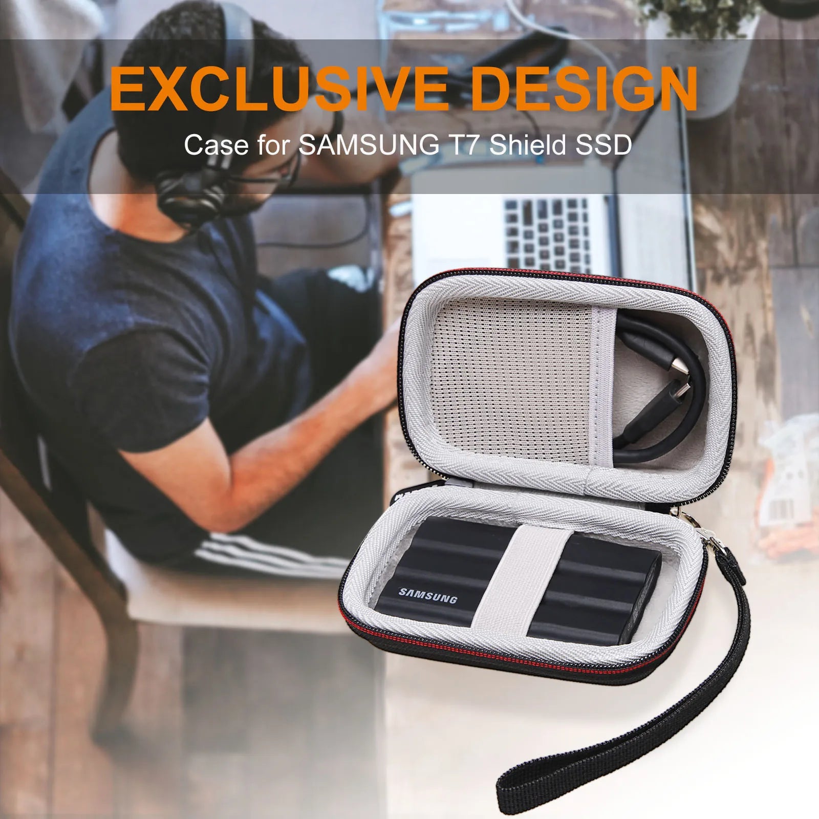 *SAFETY : Samsung T7 Shield case made of premium hard EVA and durable velvet materials,offers double protection against scratches, dents, bumps, and drops.The inside with fixing belts to prevent the camera from falling when when opening the case.