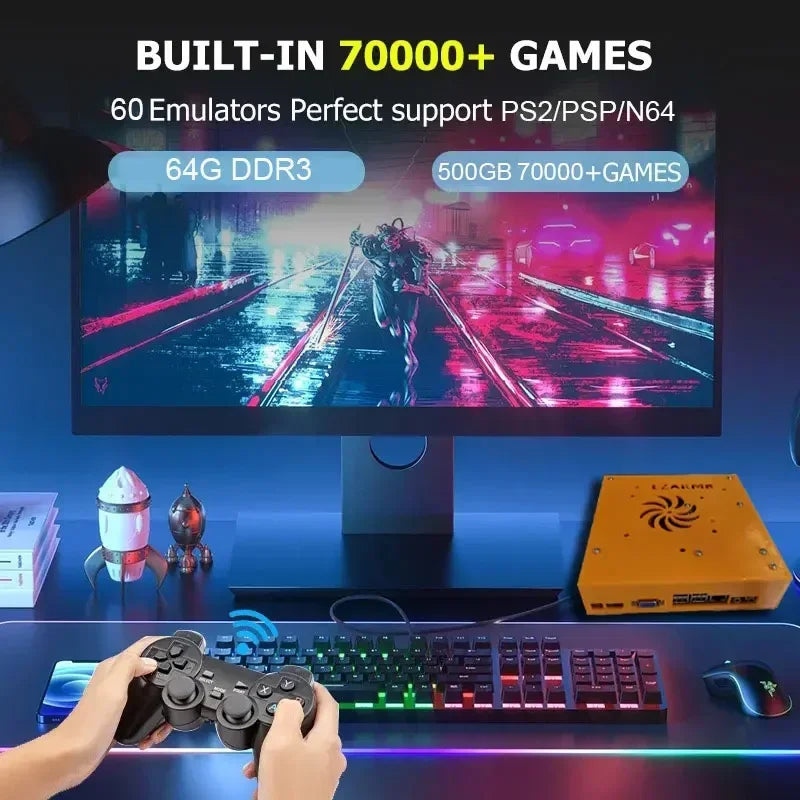 LZAKMR M8 Plug and Play Retro 1037U Game Console 500G HDD 70000+Games For Wii PS2 N64 PSP GameCube N64 Wireless handle