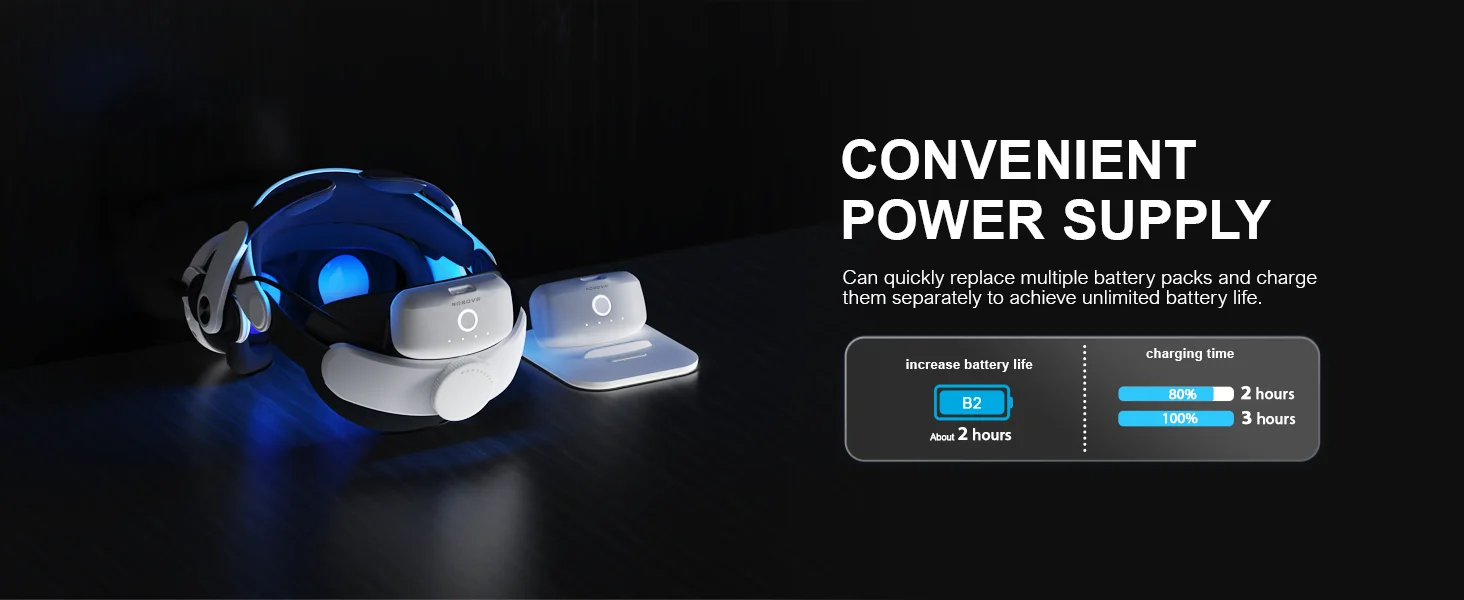 Double the battery life: The battery capacity of a single battery pack is 5200mah, adding about 2 hours (APP depends) of VR time.