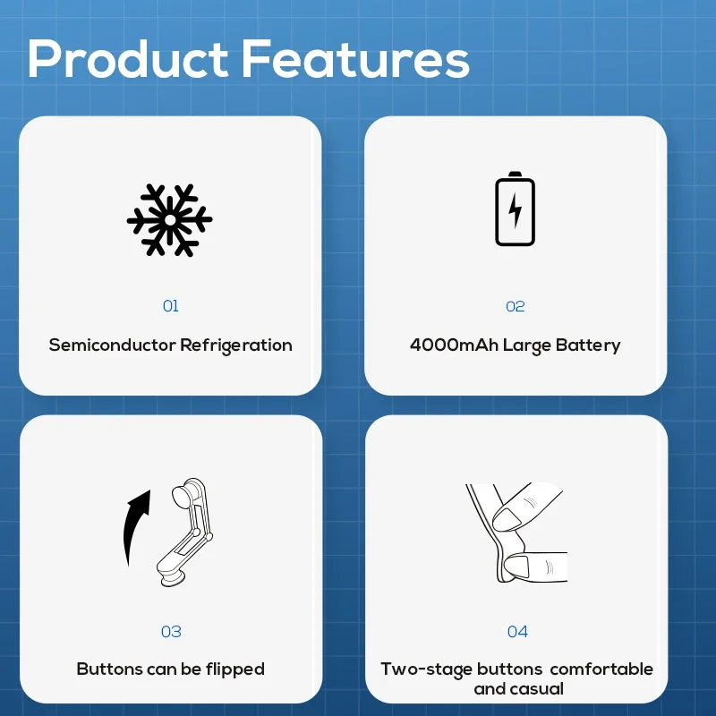 Built in super large capacity battery, 2000mAh * 2, semiconductor cooling design, cooling takes only two seconds, the principle of fast freezing in the freezer, tightly fitting, perfectly fitting the heating part of the phone