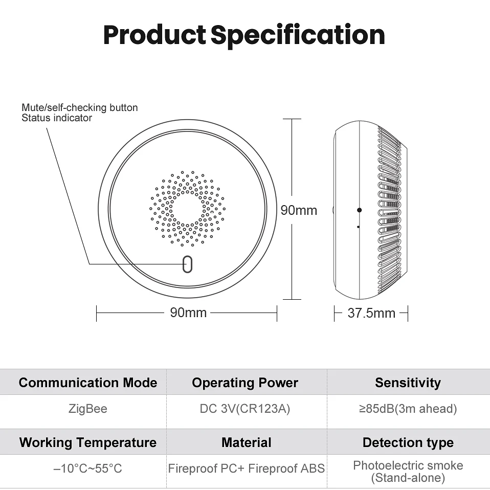 Safeguard your family with the ever-vigilant Smart Zigbee Smoke Detector. This smart smoke detector connects via WiFi, supports app control and voice control, allowing you to monitor your home's safety from anywhere.