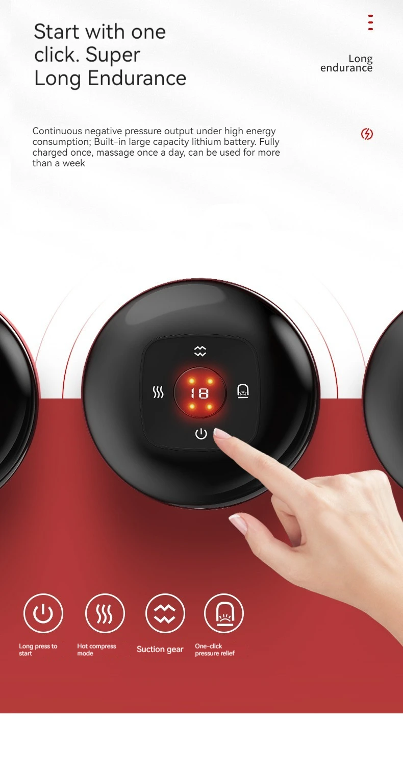 • Vacuum Cupping Feature :Equipped with a vacuum cupping feature, it helps in deep tissue relaxation, improving blood circulation, and promoting overall health.