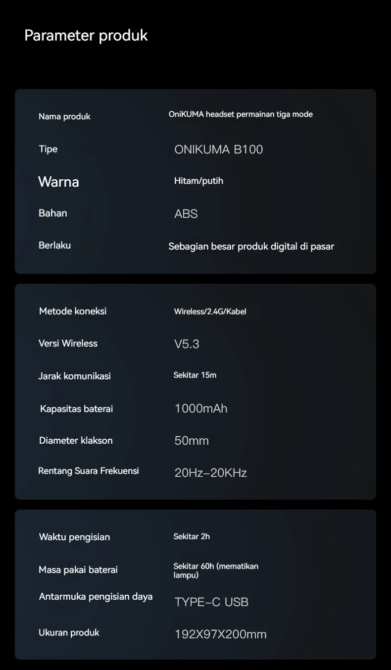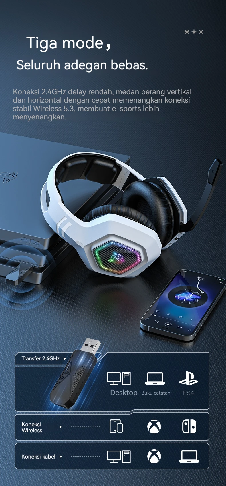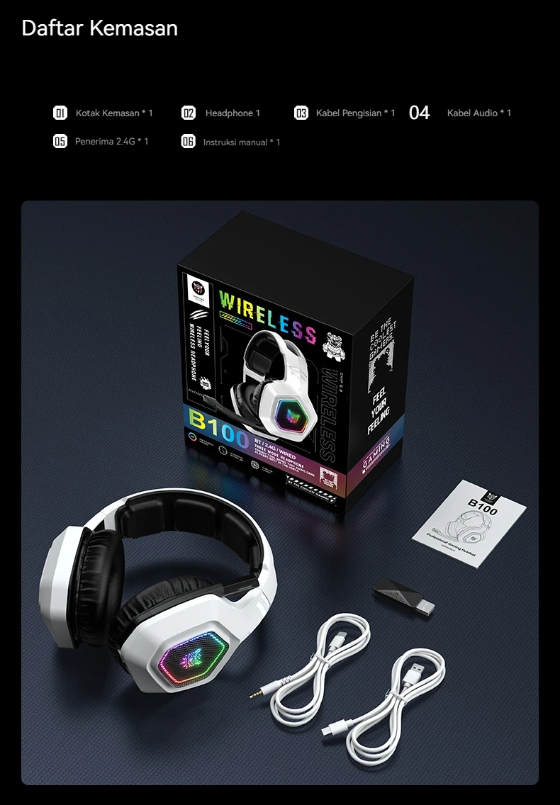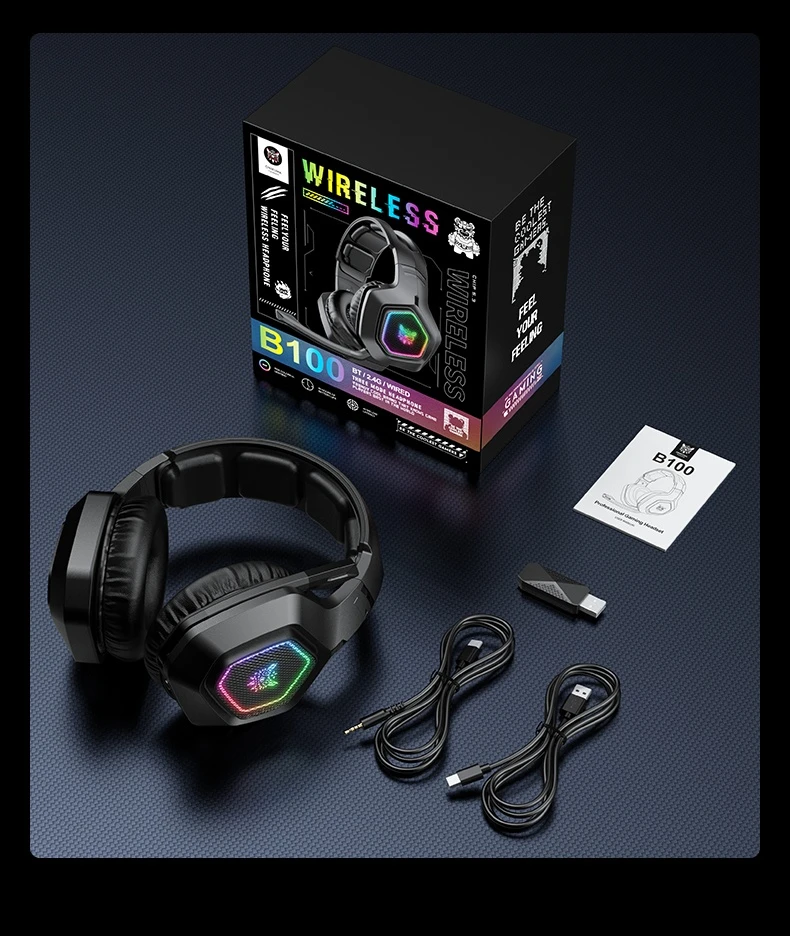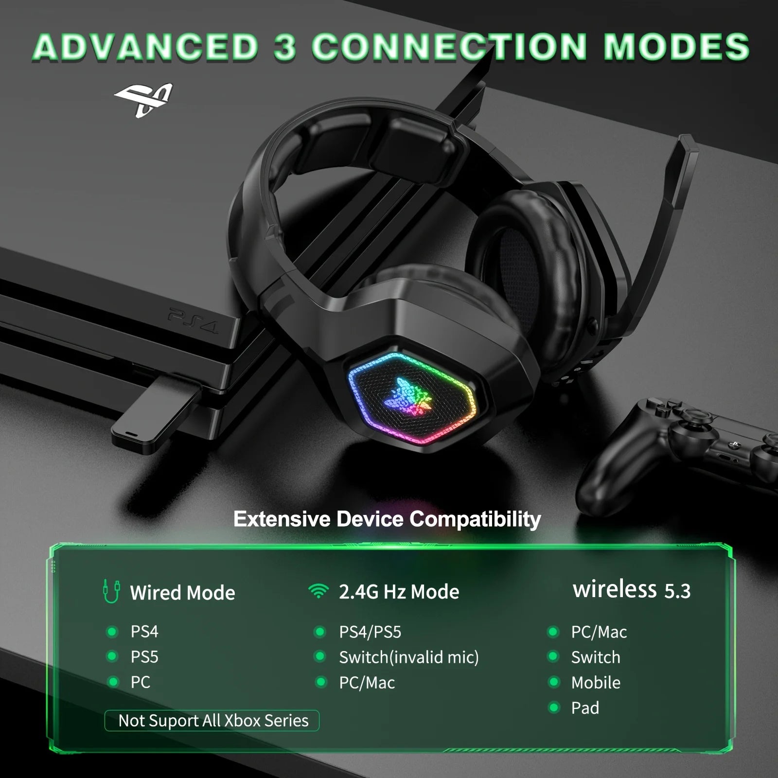 ONIKUMA B100 Gaming Headset 2.4GHz Wireless Headphone with Microphones HiFi Sound Quality for PC Laptop Gaming Xbox