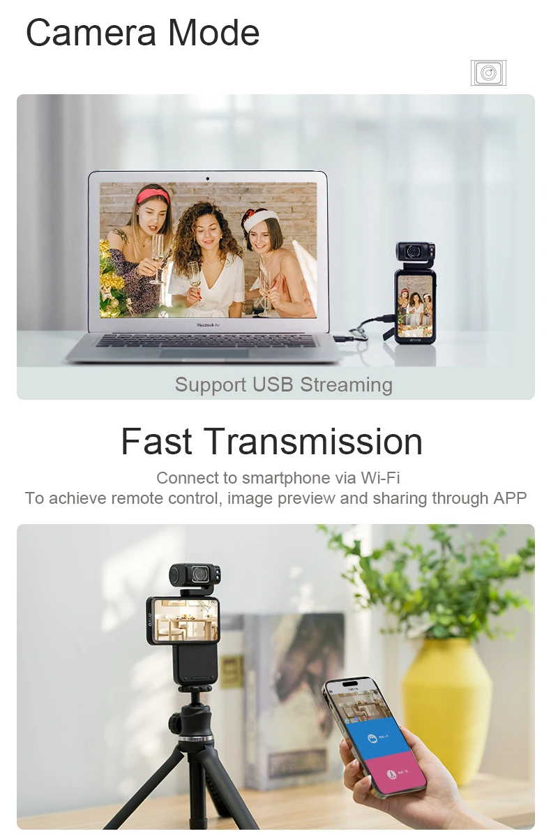 Ordro M3 Pocket Action Camera Digital Camcorder Palmcorder, 4k 60fps Wide Angle Shooting for YouTube Vlog, Live Streaming Camara
