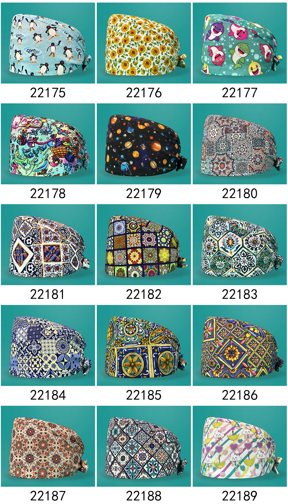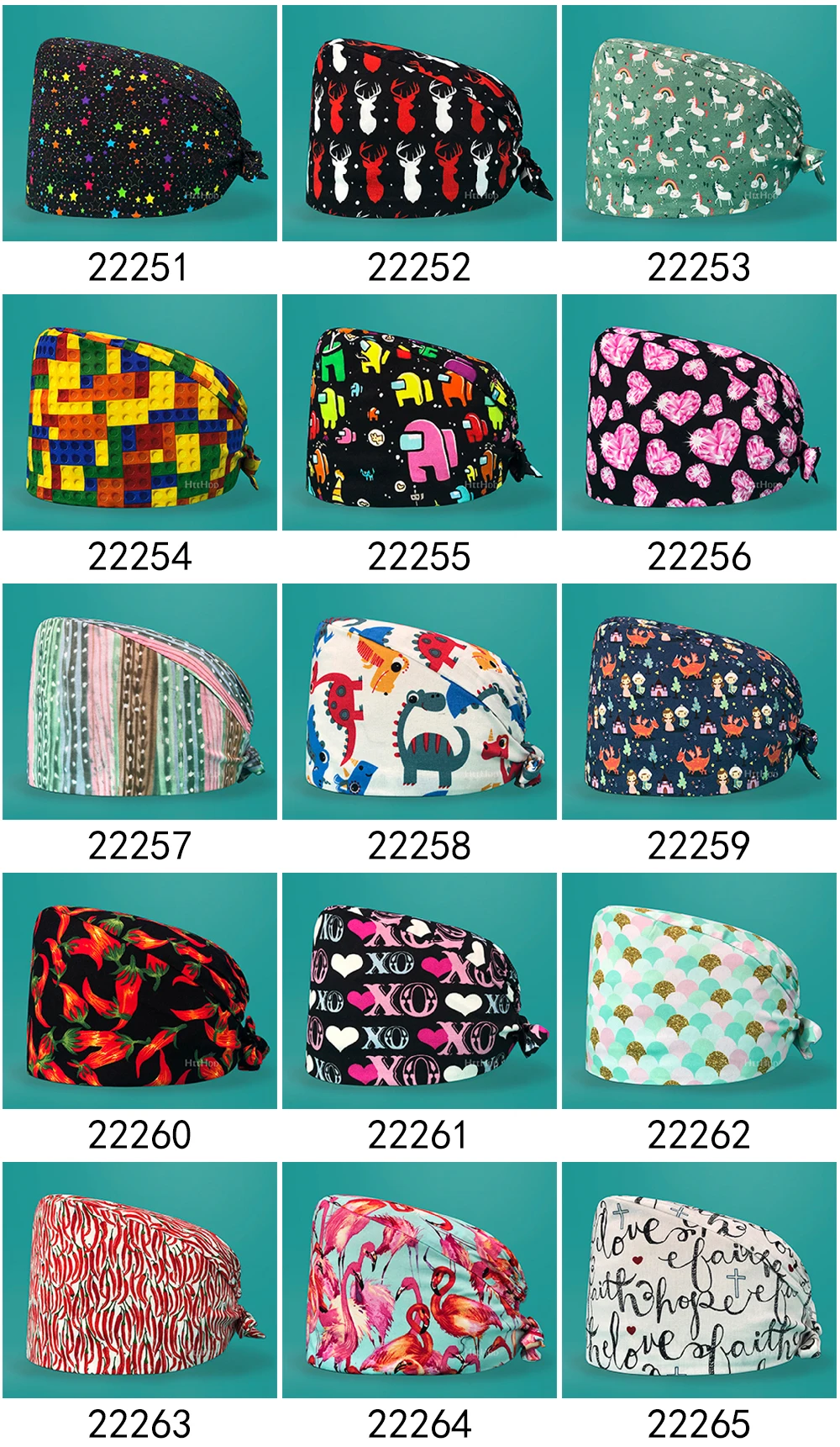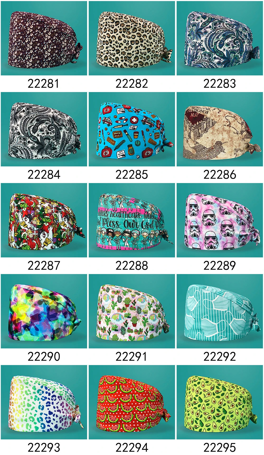 Personalized Printing Doctor Surgical Cap Long Hair Classic Nurse Toe Hat for Men Women Sweat-absorbent Towel Cotton Scrub Cap