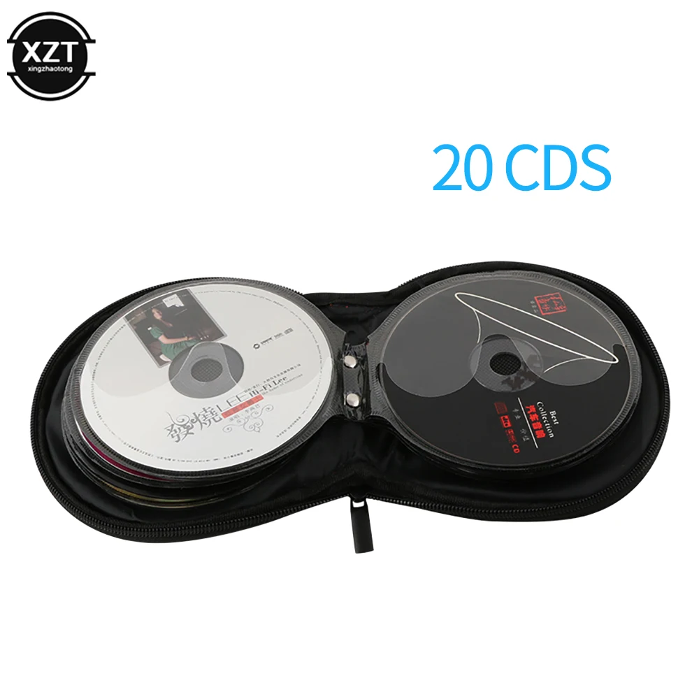 Portable CD DVD Case Storage Disc 20 Capacity Dual-use Oxford Cloth Storage Bag Round Holder with Zipper for Home Car CD Box Bag