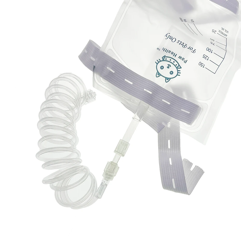 Professional Pet Dog Cat Urine Drainage Collection Bag Luer Lock With Extension Tube Hanging Strap Anti Reflux Drain 150ml 300ml