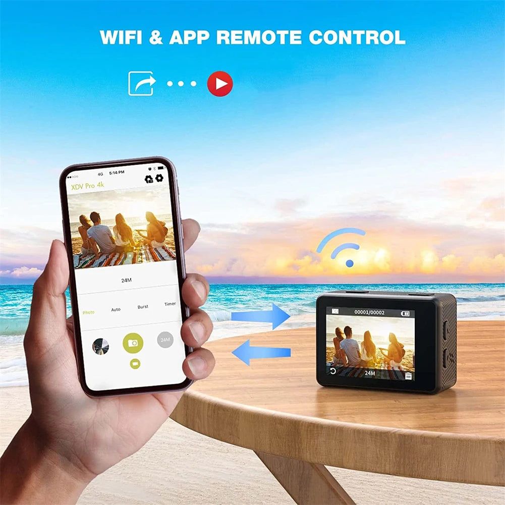 Q60AR Camera 4K 30FPS 24MP WiFi Action Camera 170° Wide Angle Waterproof Camera Dual Screen Display For Outdoor Sports Diving