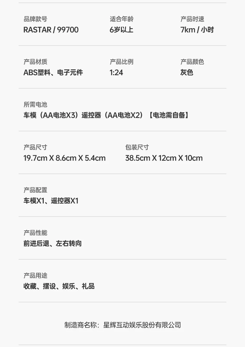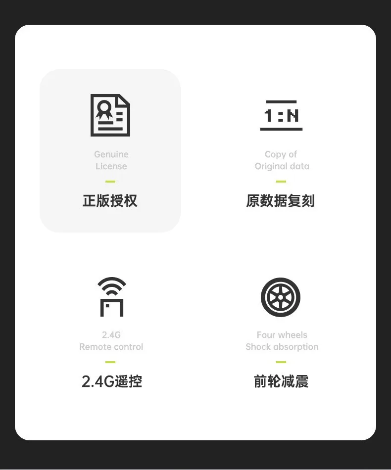 - Features: Authentic car styling with injection moulded body, independent suspension system.