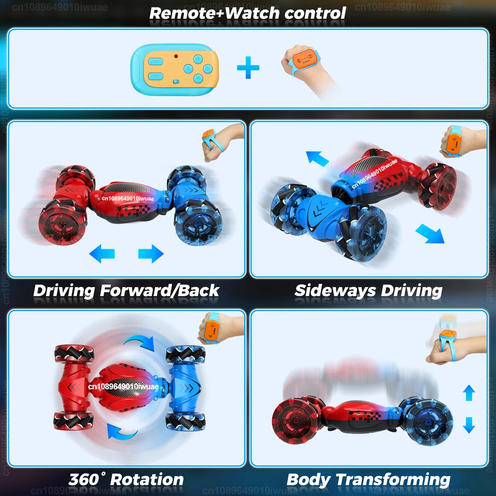 4WD RC Stunt Car 2.4G Radio Remote Control Drift Car 360 Degree Rotation Off Road Gesture Induction Deformation Twist Climbing Radio Controlled Car Toys gift for Kids
