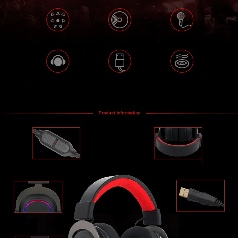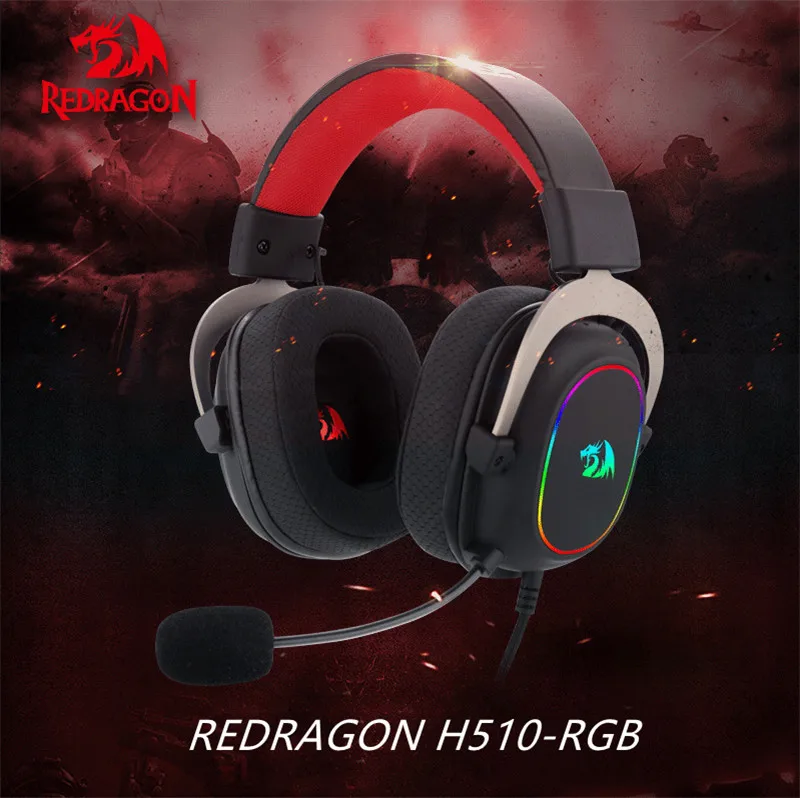 Redragon H510-RGB Zeus X Gaming Headphone Microphone Noise Cancelling 7.1 USB Surround Computer Headset Earphones EQ Controller