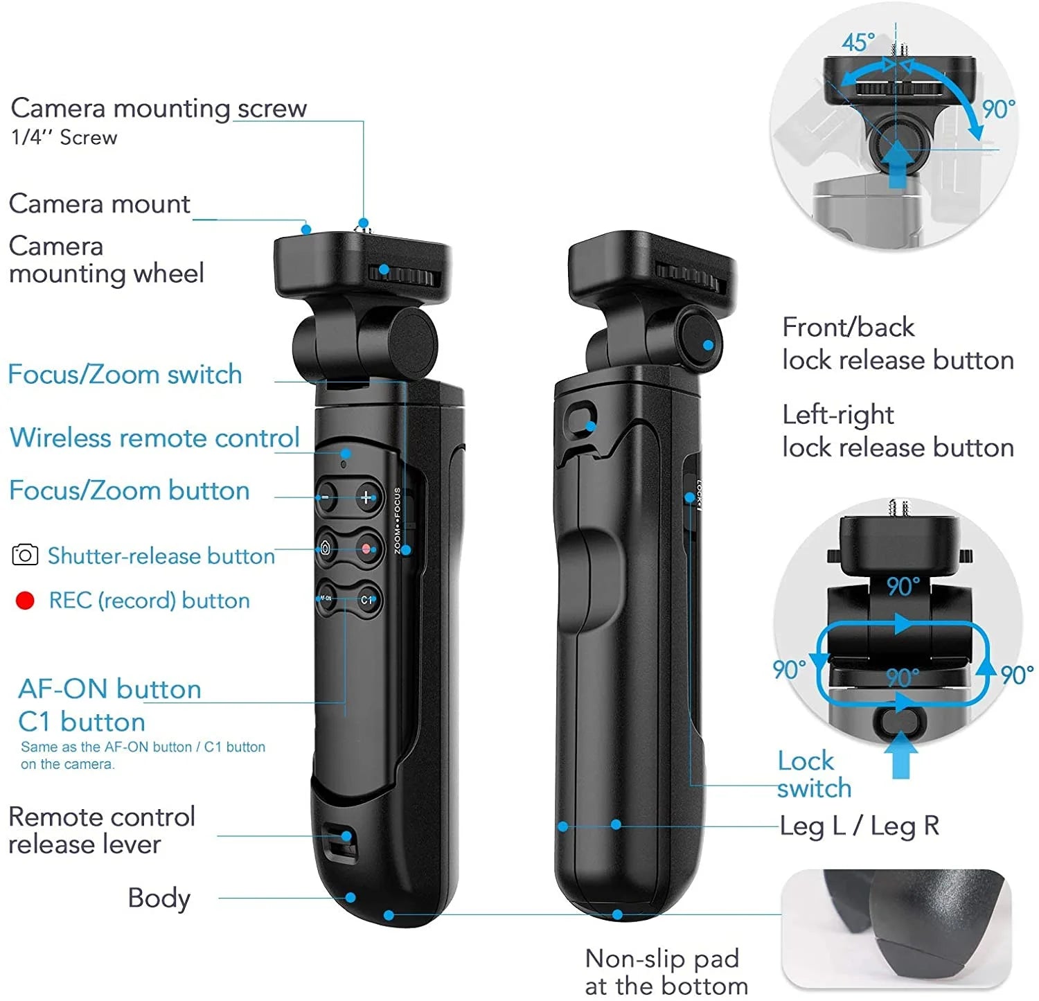 * Please do not use your hand to shake the grip tripod. The handle bears a weight of about 1kg, but the force of the hand shake may be much greater.